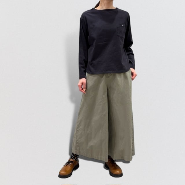 控えめなボートネックと、裾の程良いテールラインは、コーディネートし易いカッティングです。