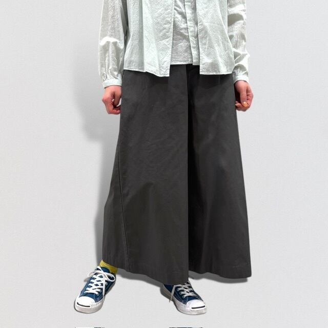 程よく巾をとった、すっきりとしたキュロットパンツは、トップスを選ばず着用頂けます。