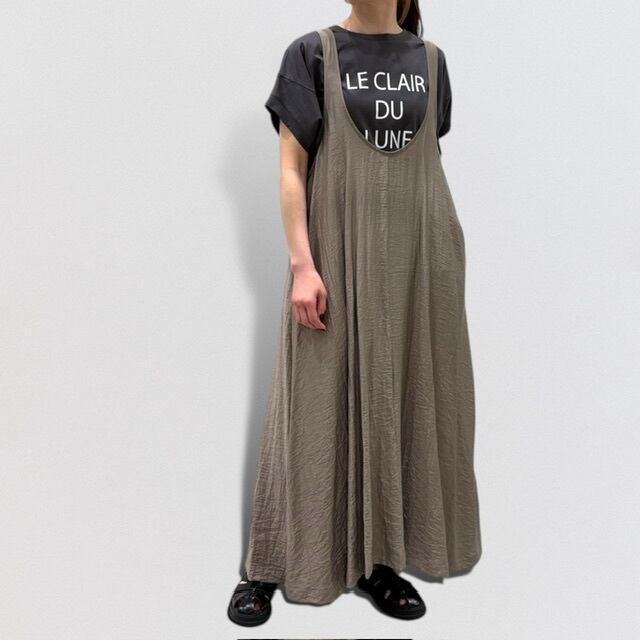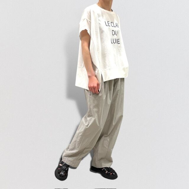 ゆったりめのサイジングですが、前裾に斜めのカッティングにスリットを入れ前後差をつけ、すっきり見えするシルエットになっています。