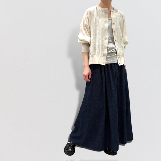 袖のギャザーは薄手素材なのでボリュームもなくスッキリ。