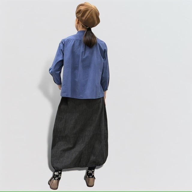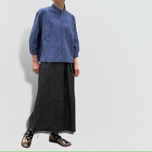 バンドカラーでAラインシルエットのシャツです。