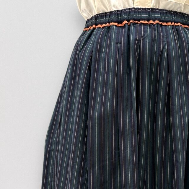 生地は、トラッドな配色が印象的な、コットン 100%のマルチストライプです。