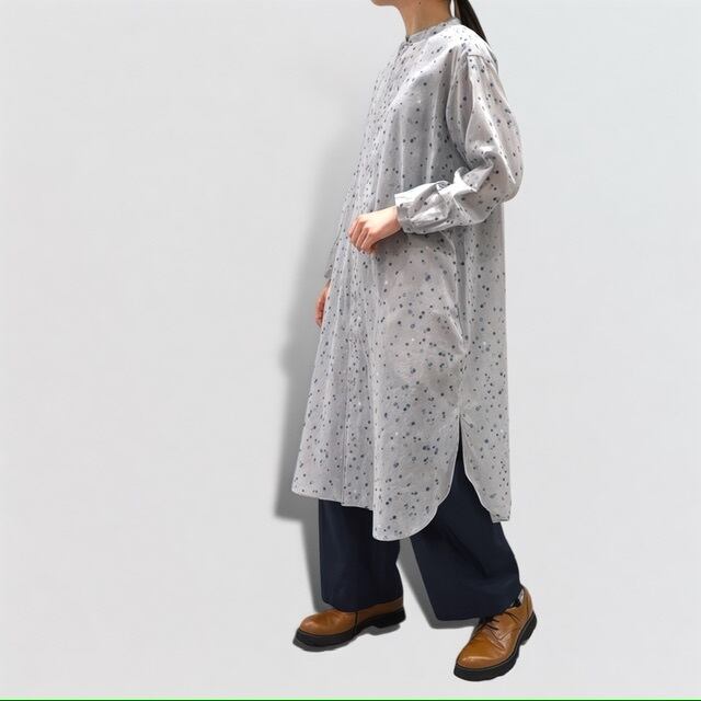 numeのオリジナルプリント生地を使用したシャツワンピースです。