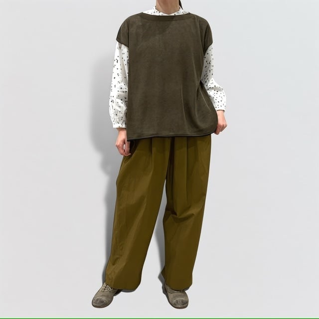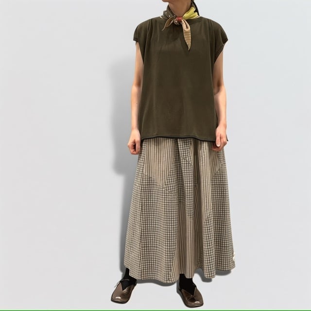 暑い時期はノースリーブとして、初秋にはTシャツやシャツを重ねたベストで着れます。