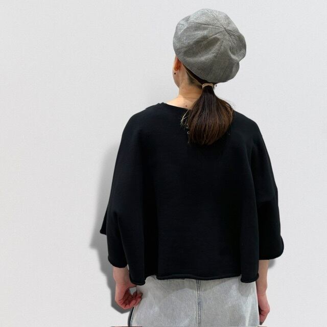 短めの着丈に仕上げたスウェットプルオーバー。
