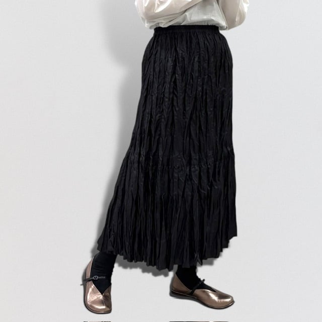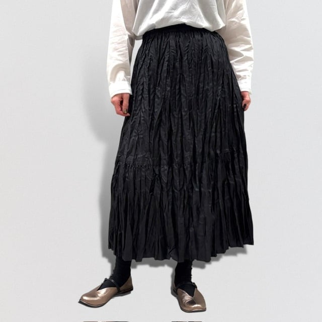 艶やかな光沢感が魅力のヴィンテージツイルを使用したティアードスカートです。