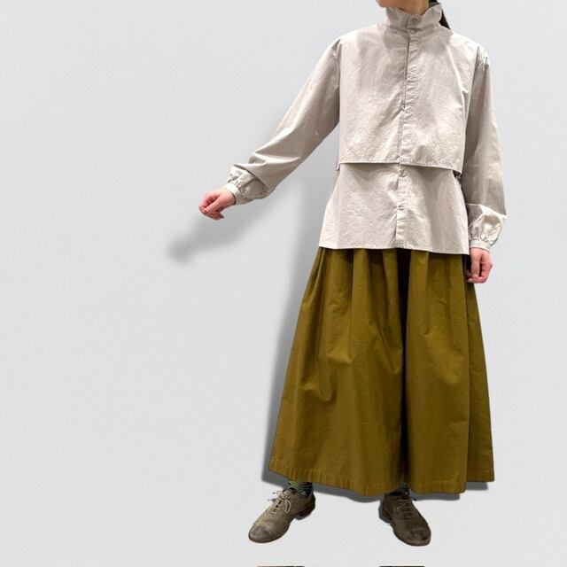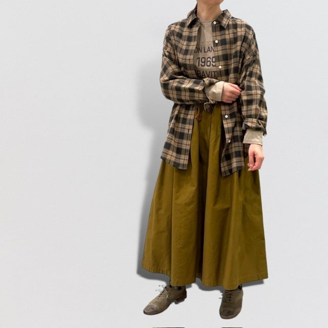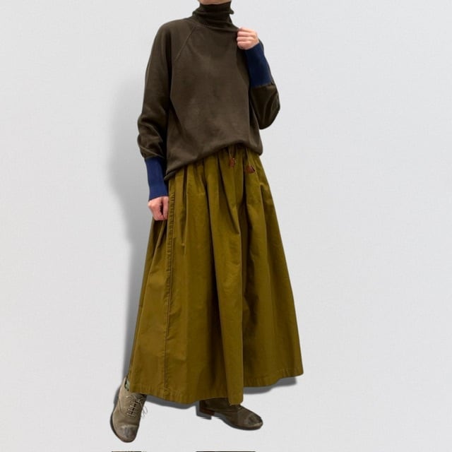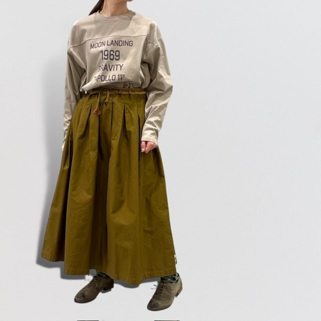 コットンモールスキンと硫化コーデュロイを掛け合わせたタックスカート。