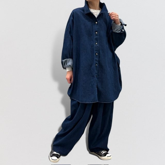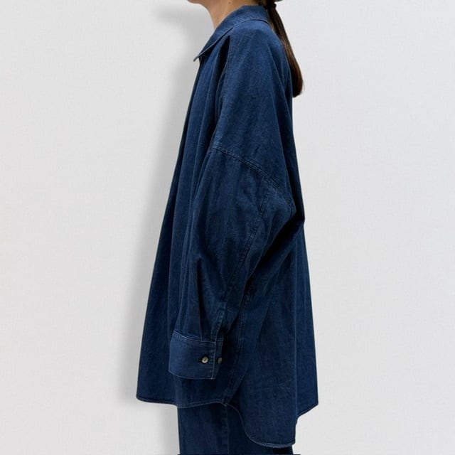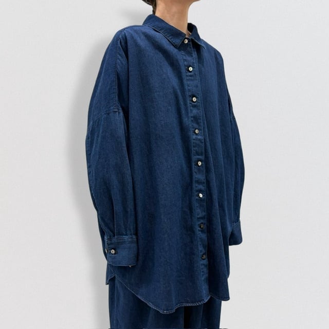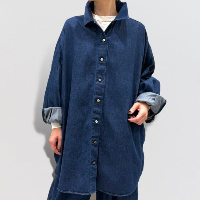 岡山産デニムを使用してデザインしたデニムワイドシャツです。