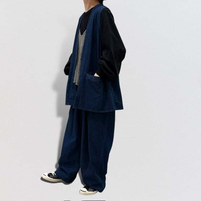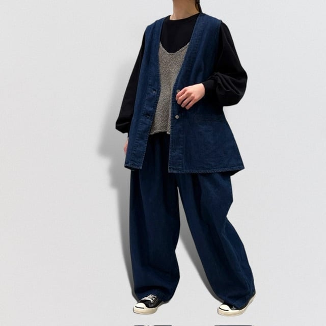 同素材でデニムベストとタックワイドパンツもあります。
