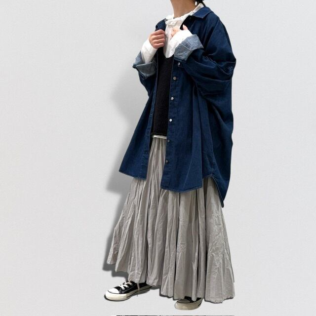 ワイドな身幅で、シャツコートとしても使えます。