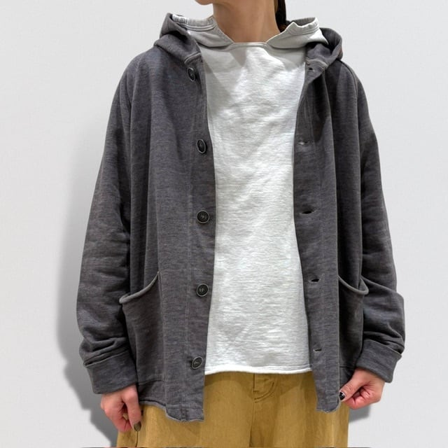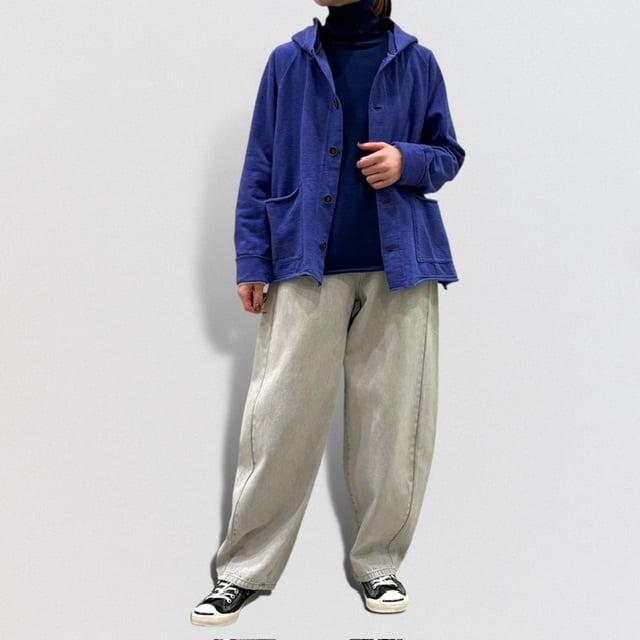 裾、ポケット口は裁ち切り仕様でラフな仕上がり。