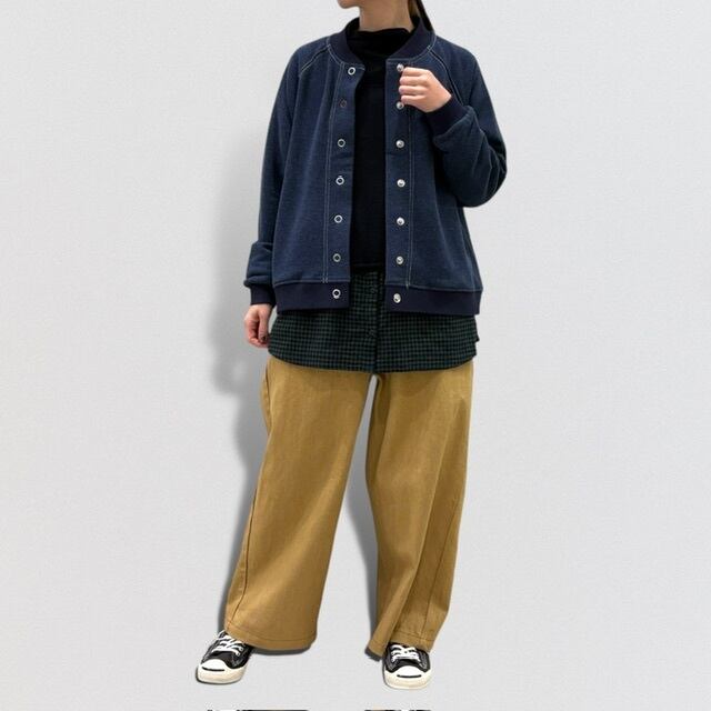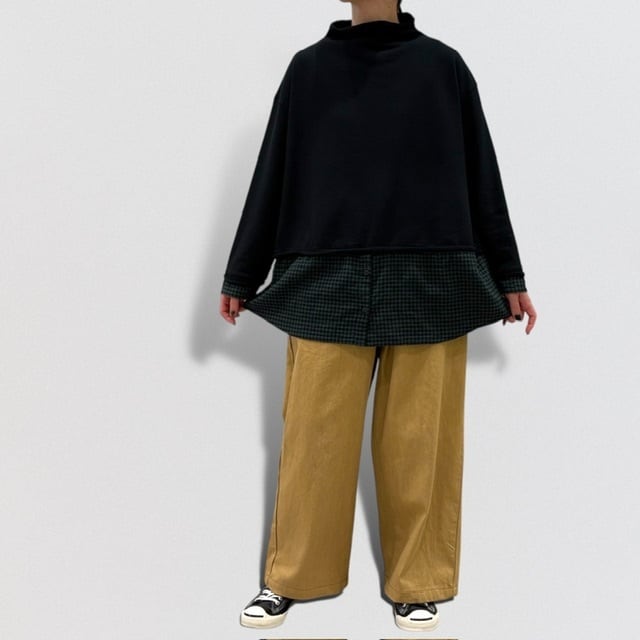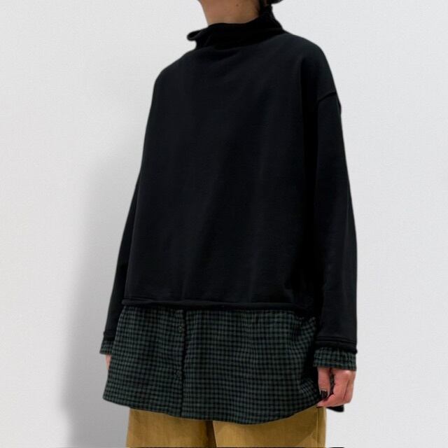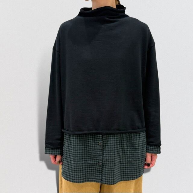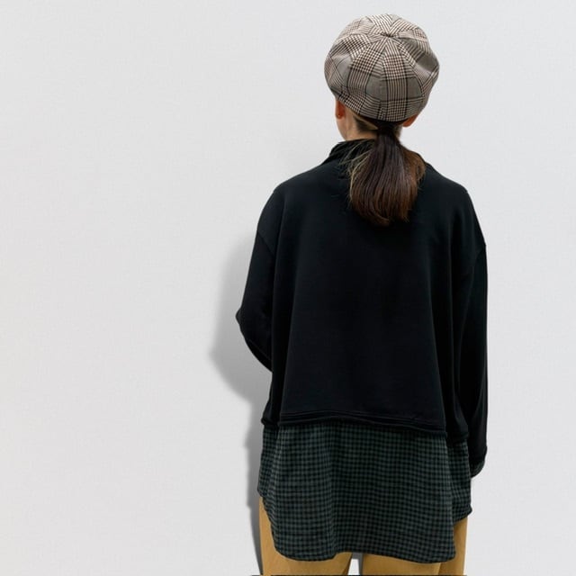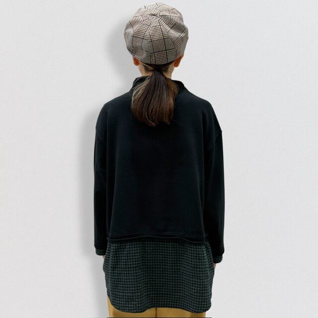 ミニ裏毛の重ね着風見せかけプルオーバー。