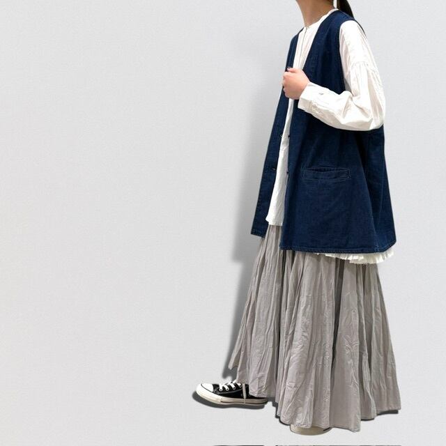 ニットやプルオーバーとのレイヤードコーデもお勧め。
