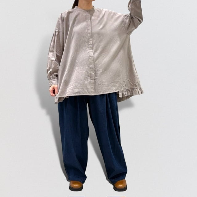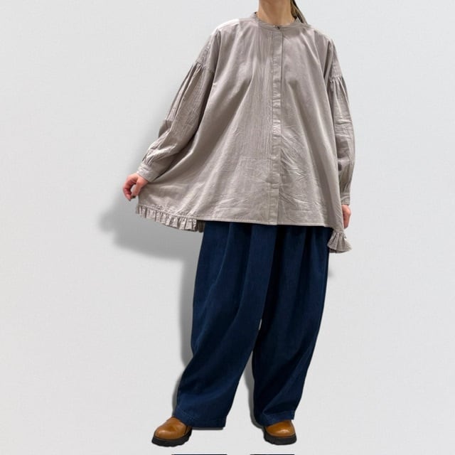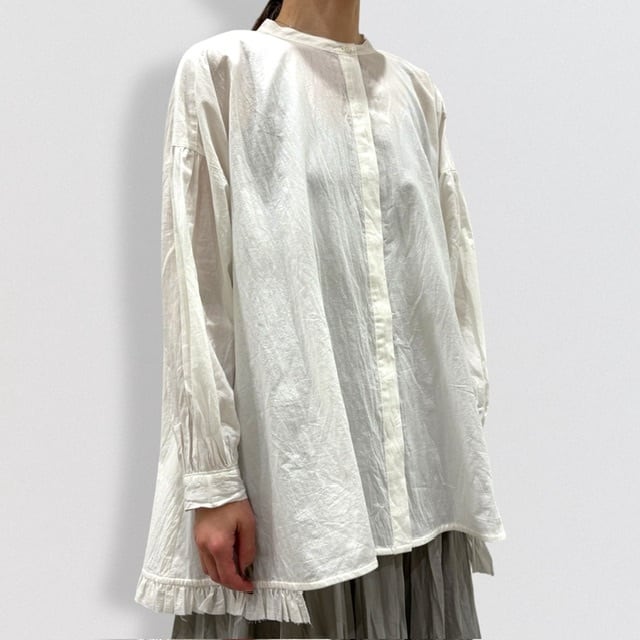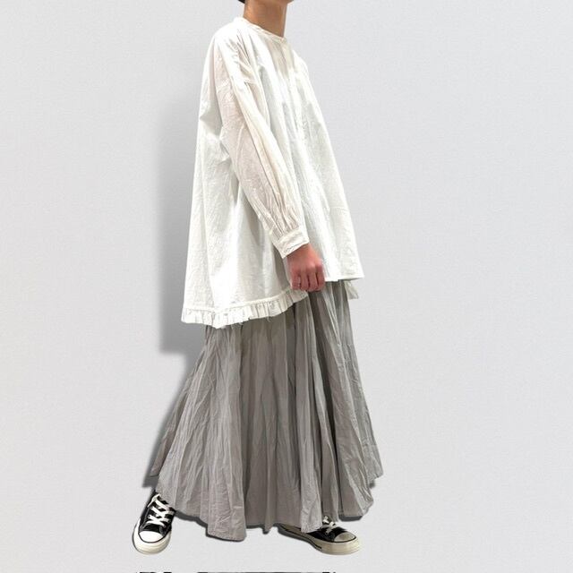 シワ感のあるソフトな質感のコットンボイルを使用した、裾にタックフリルを施しています。