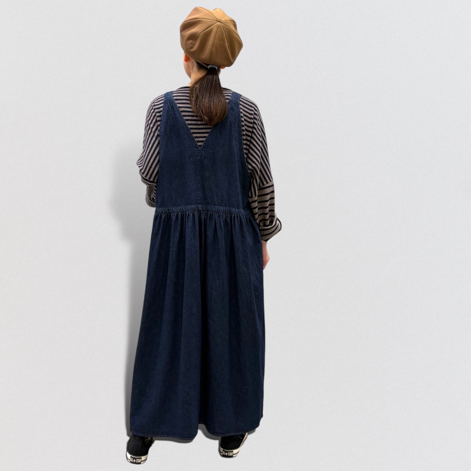 中にカットソーやブラウスを重ねたり、上にカーディガンやジャケットを羽織っても◎。