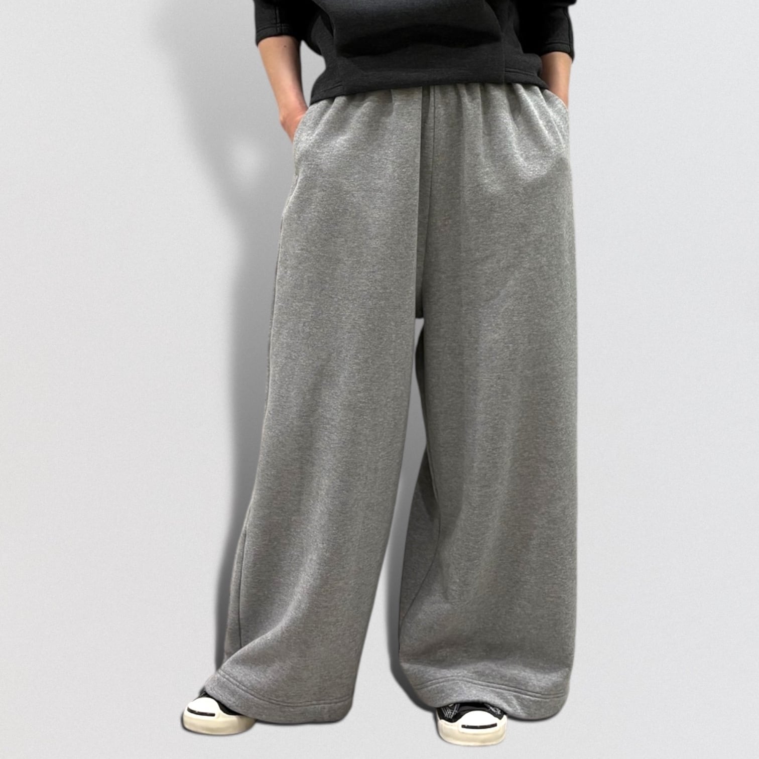 高見えするワイドなスウェットパンツで、ベーシックカジュアルにオシャレを楽しんでいただける1枚。