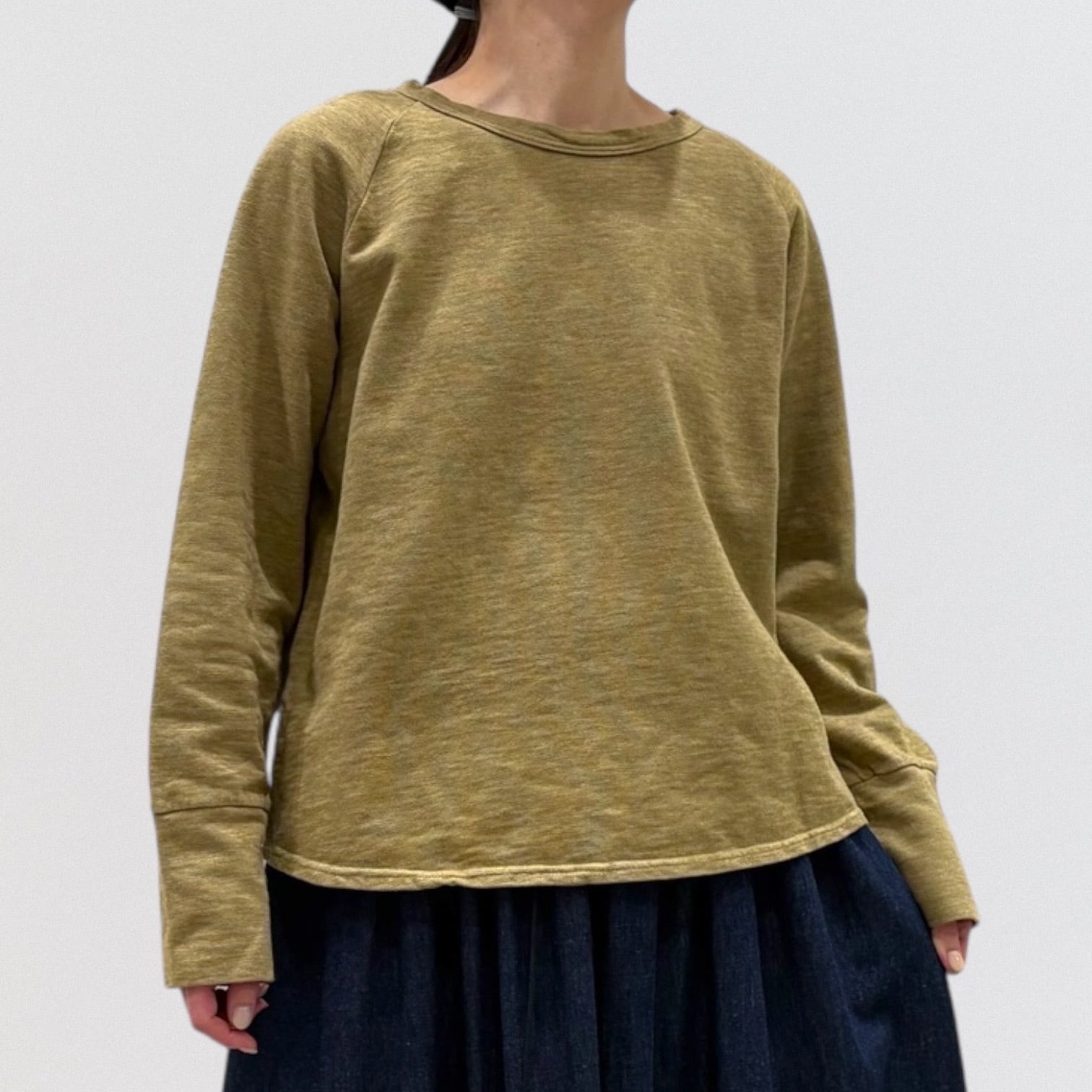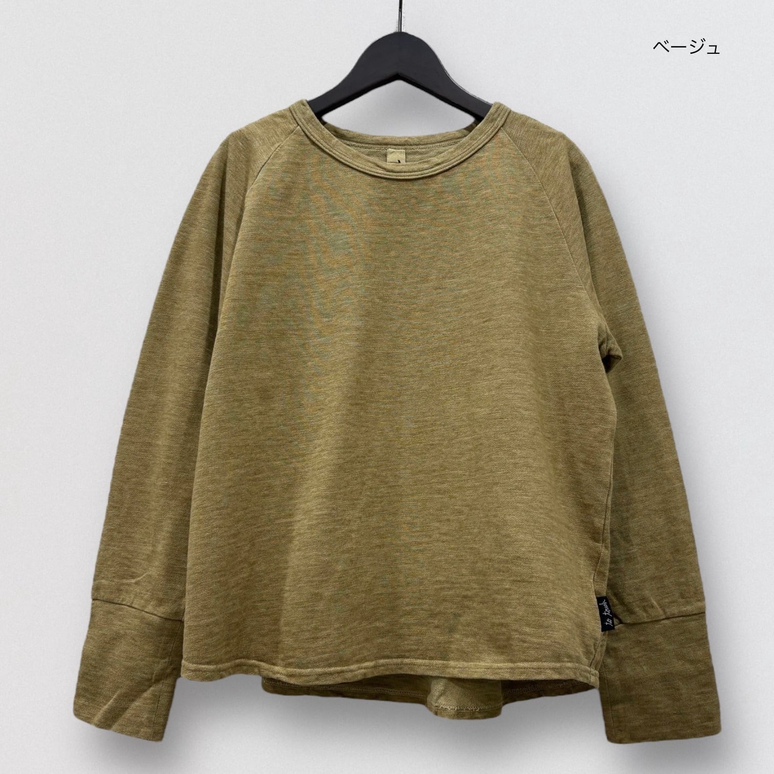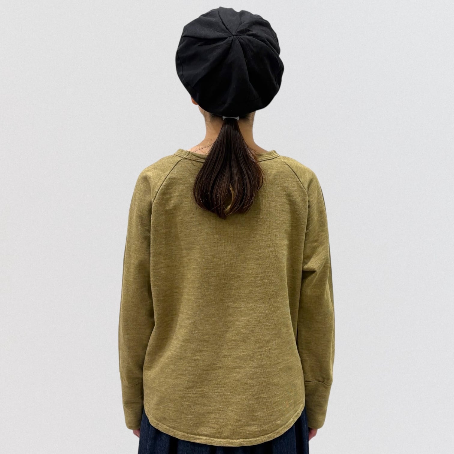 小さめのラウンドカラーとラグランスリーブで、シンプルなデザインのヴィンテージ裏毛スウェット。