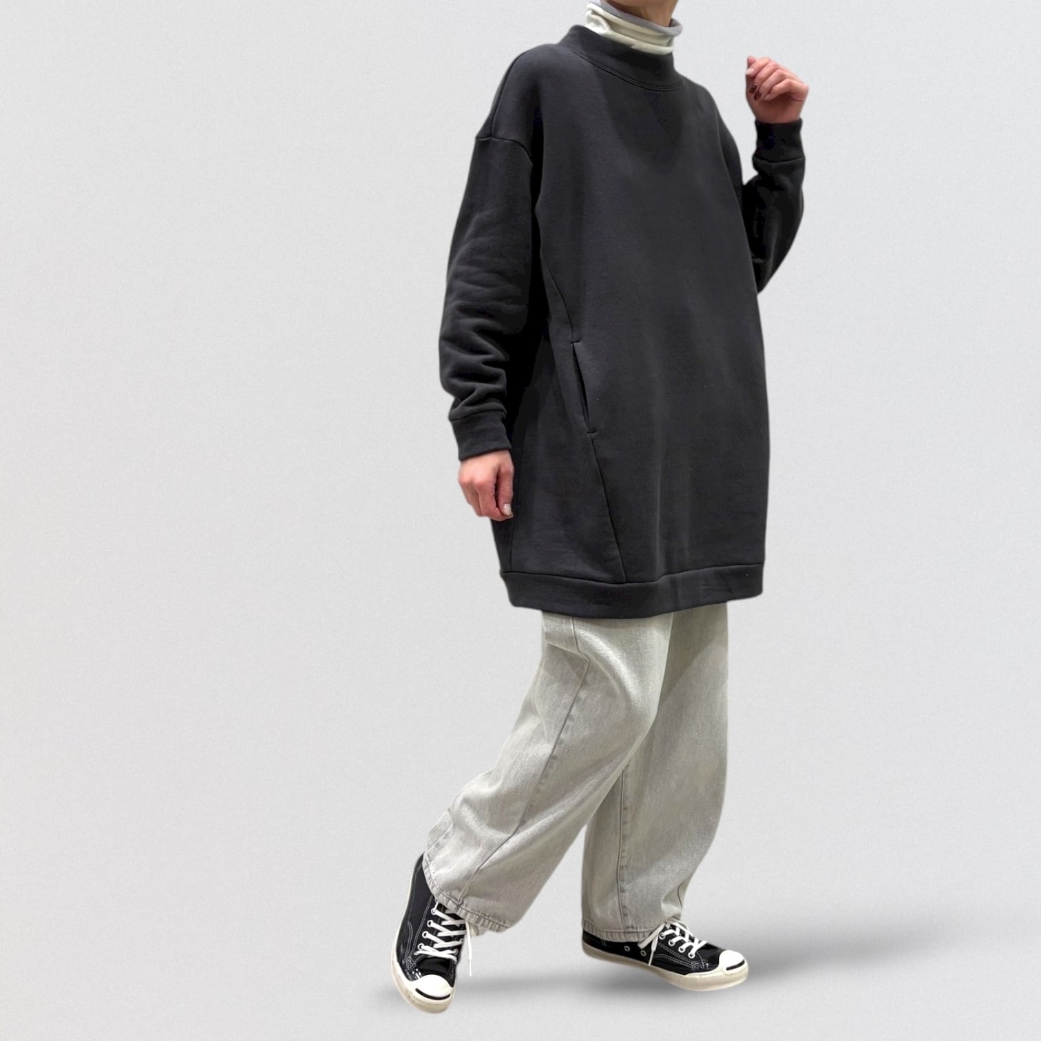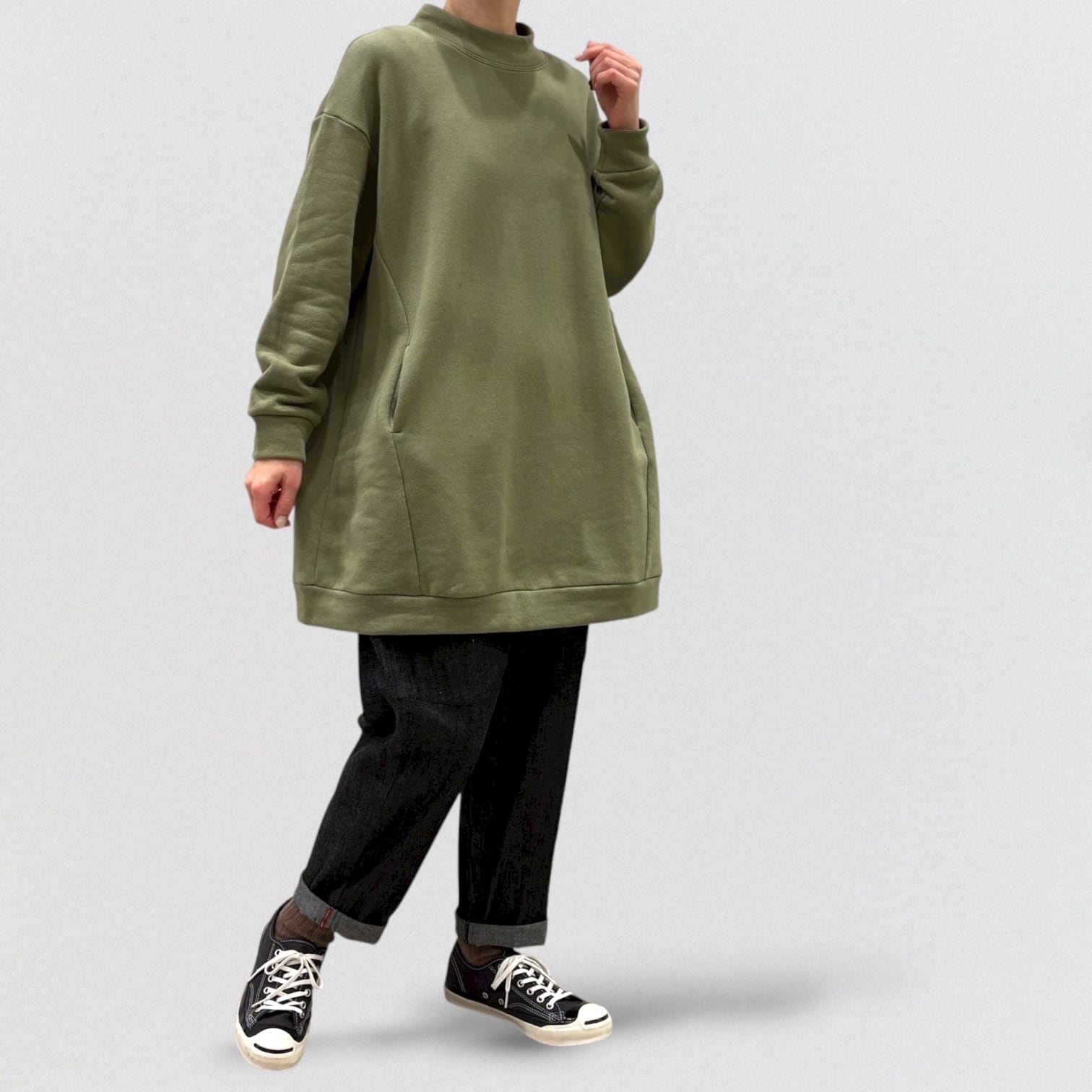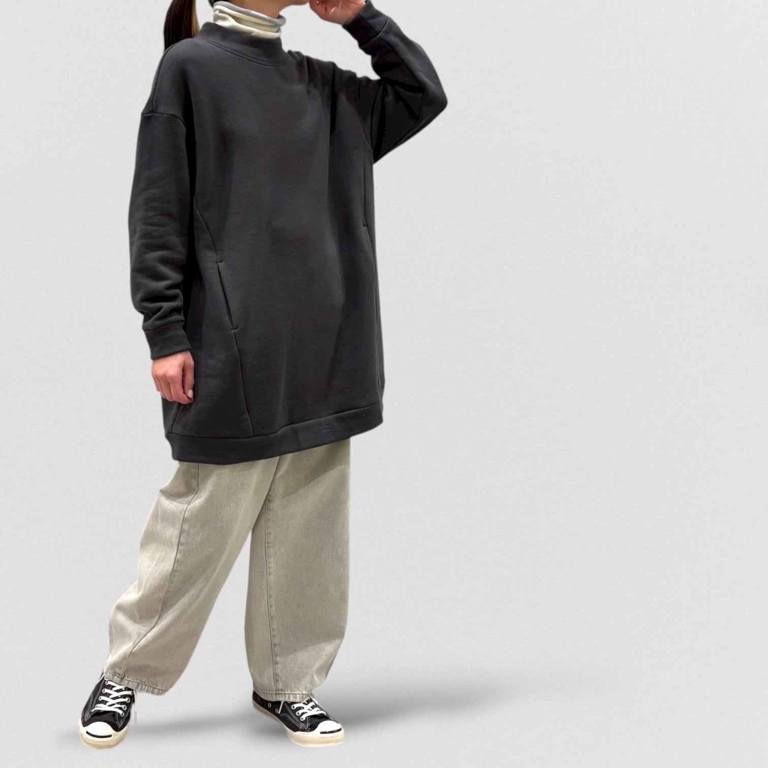 緩いハイネックで冬場はインナーを重ねてももたつきません。