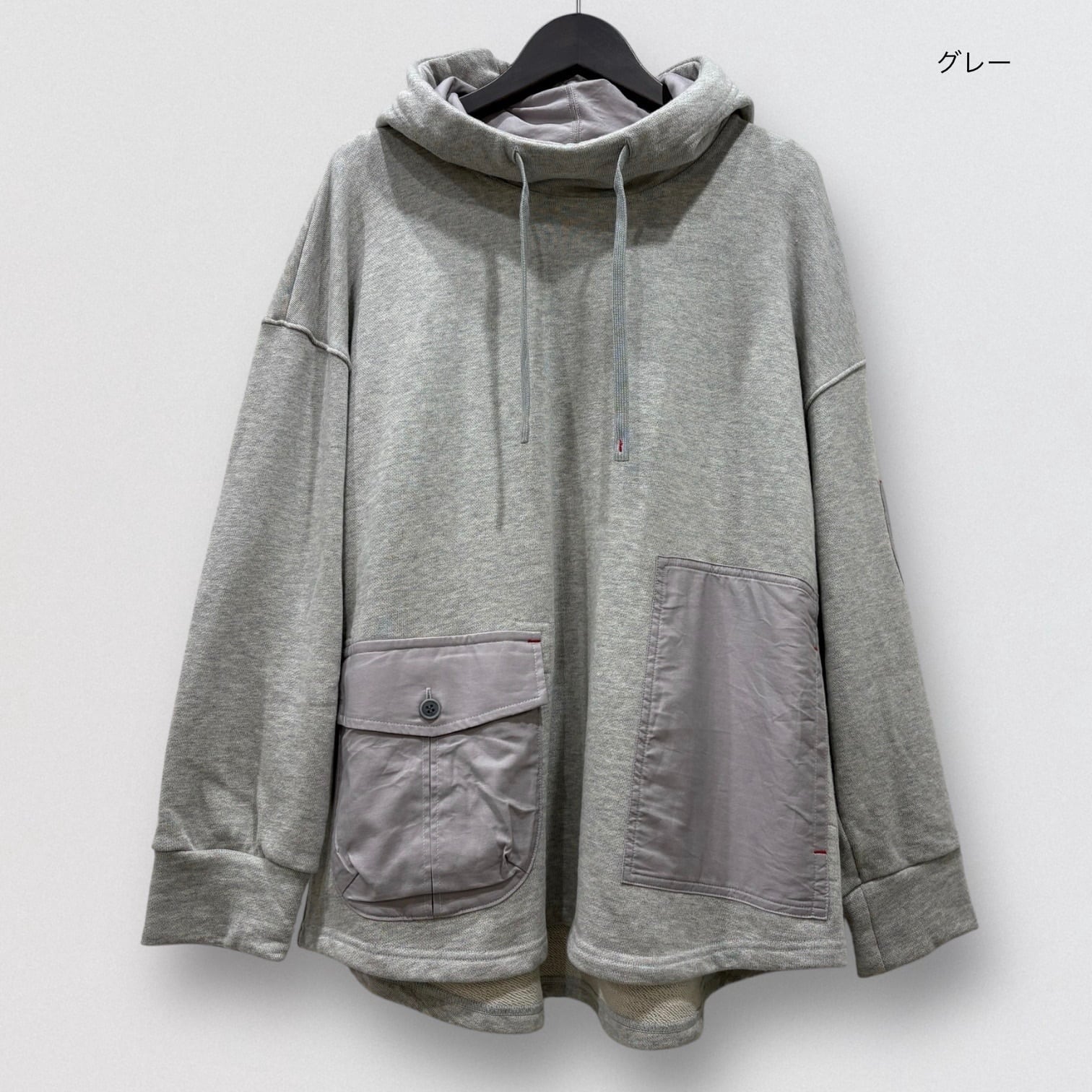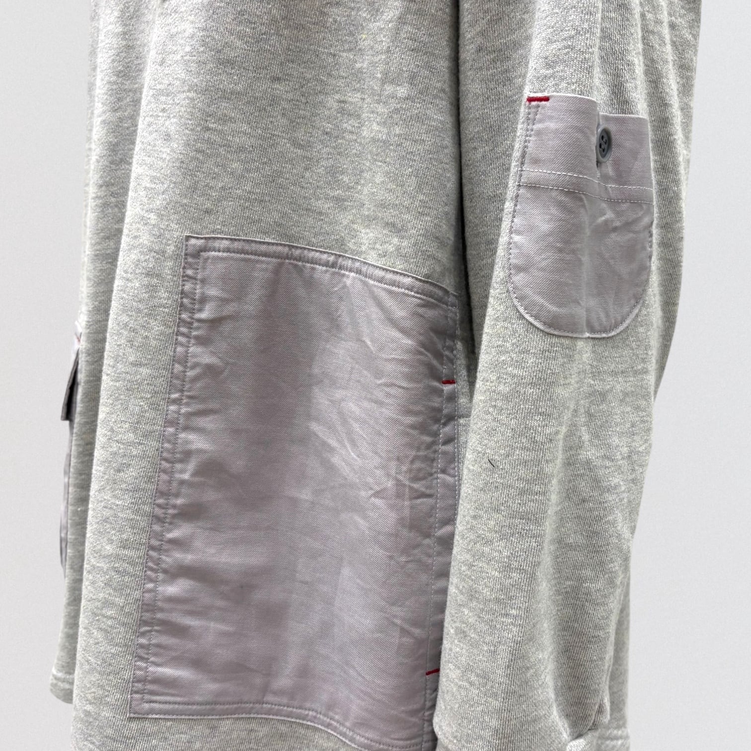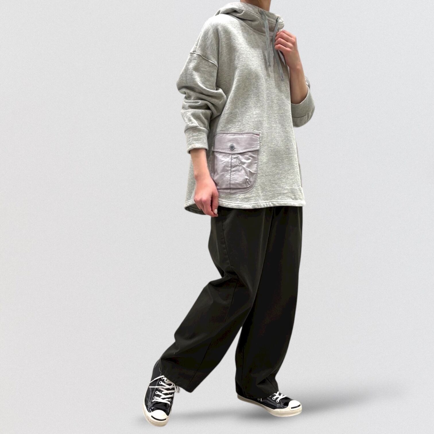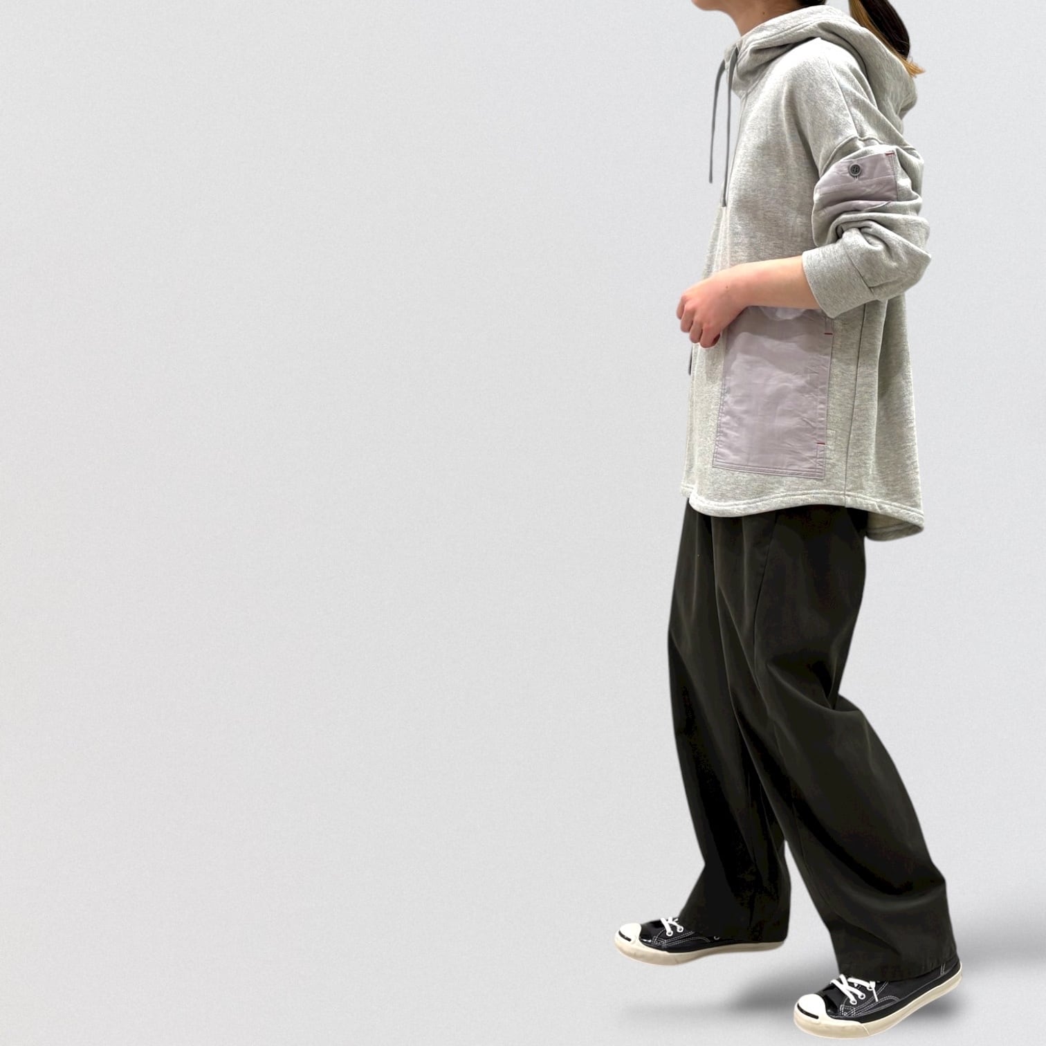 ポケット部分に布帛素材をあしらった異素材コンビ。