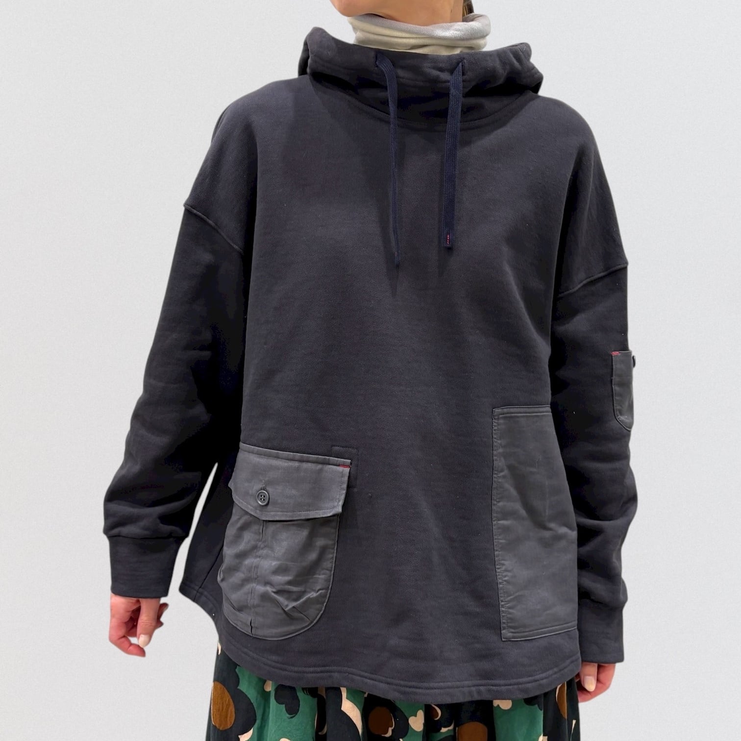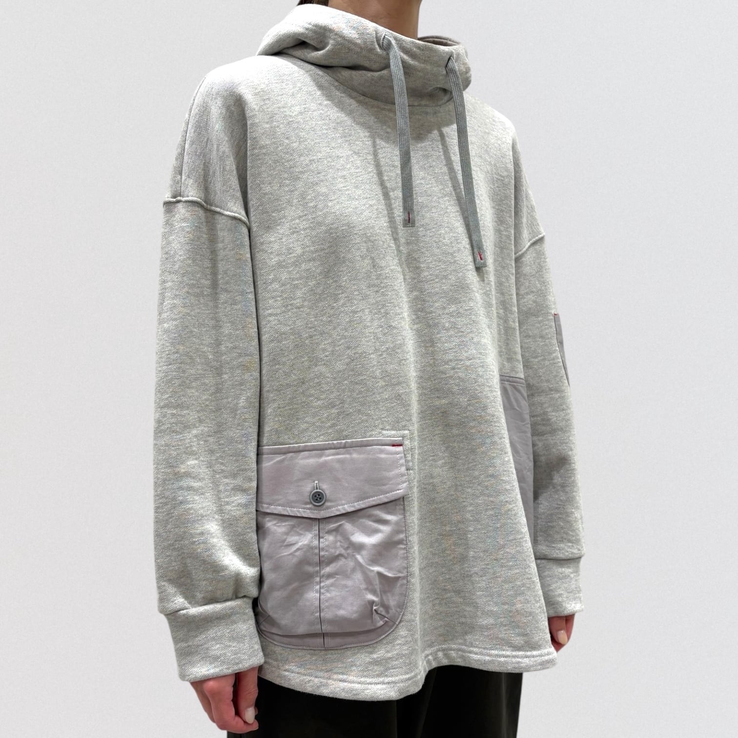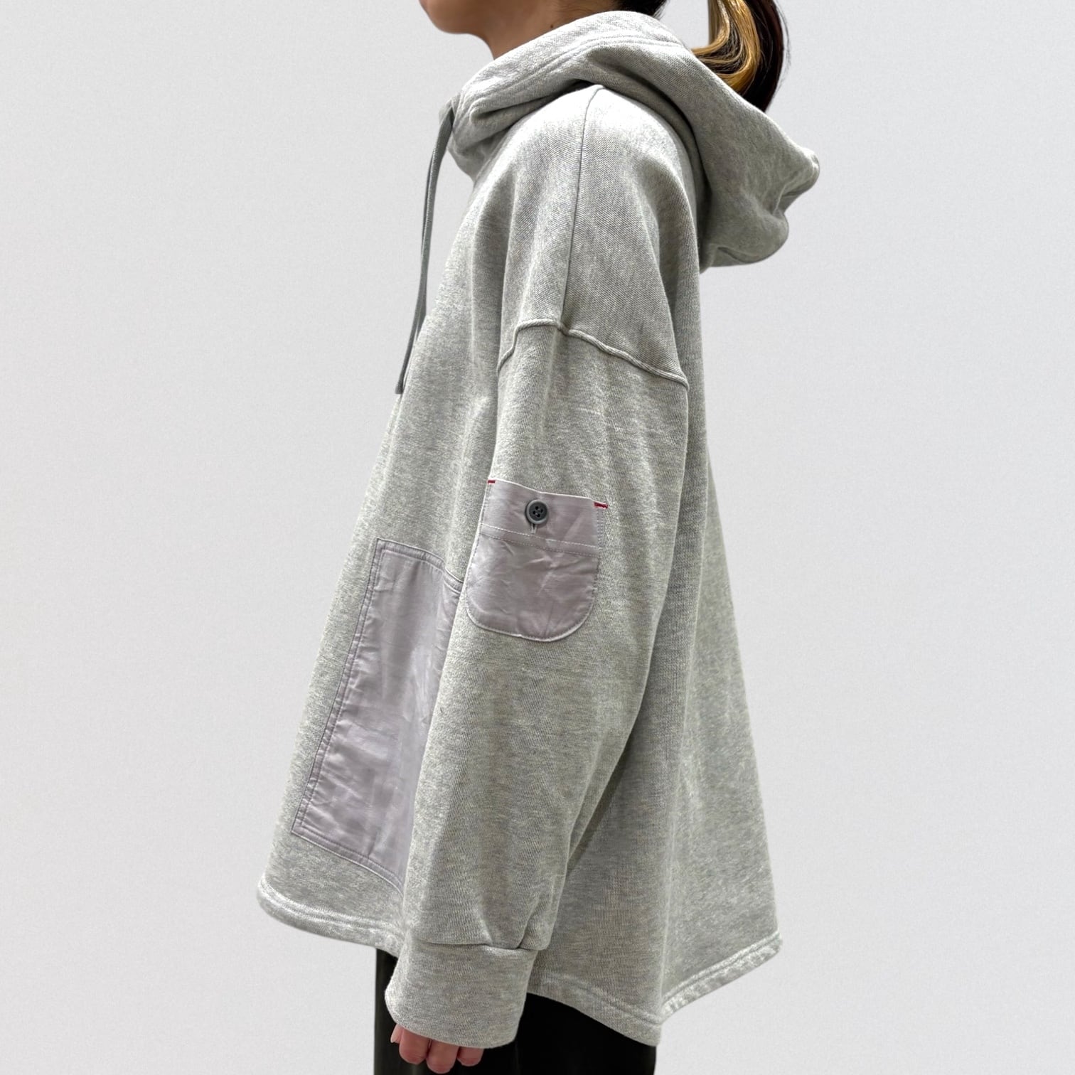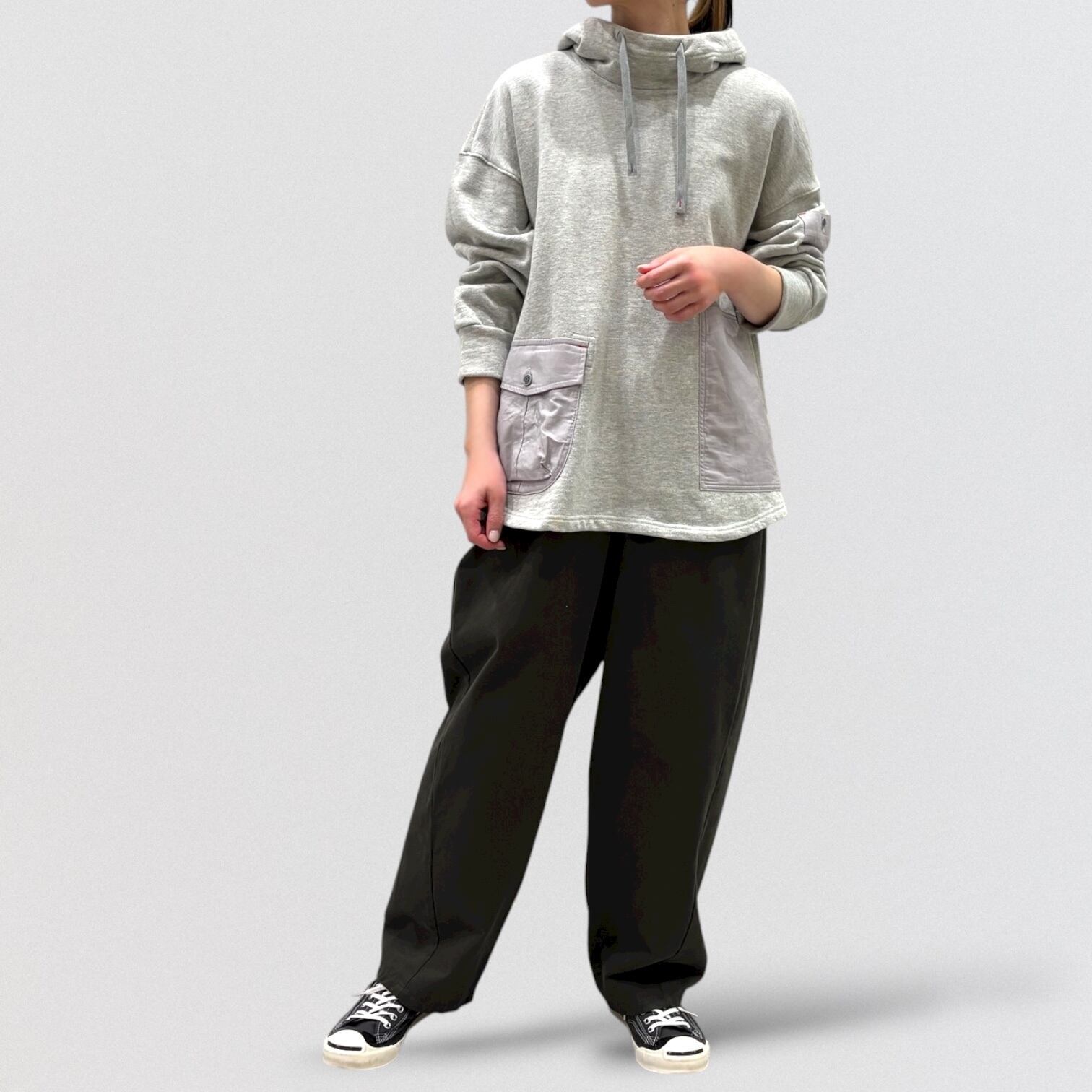 ポケット部分に布帛素材をあしらった異素材コンビ。