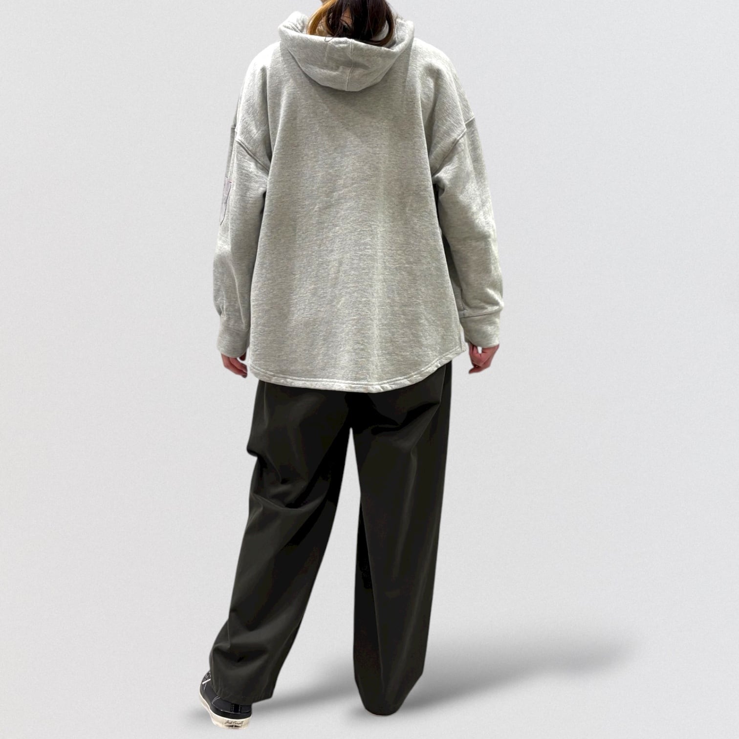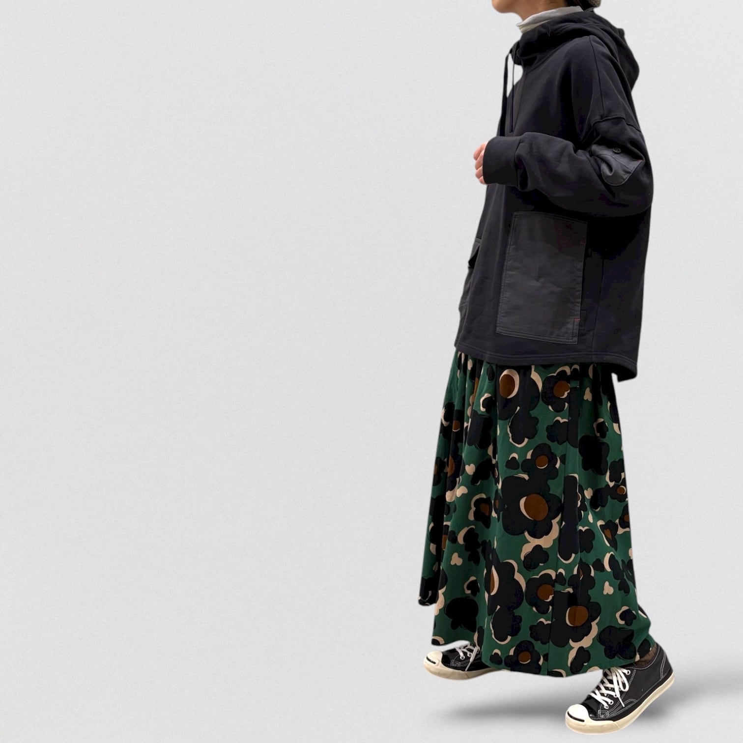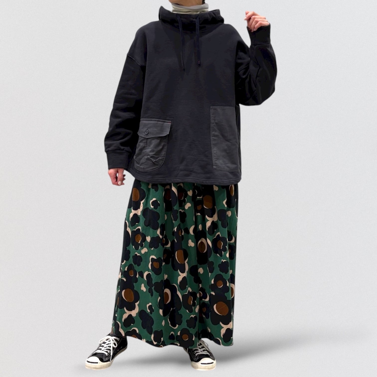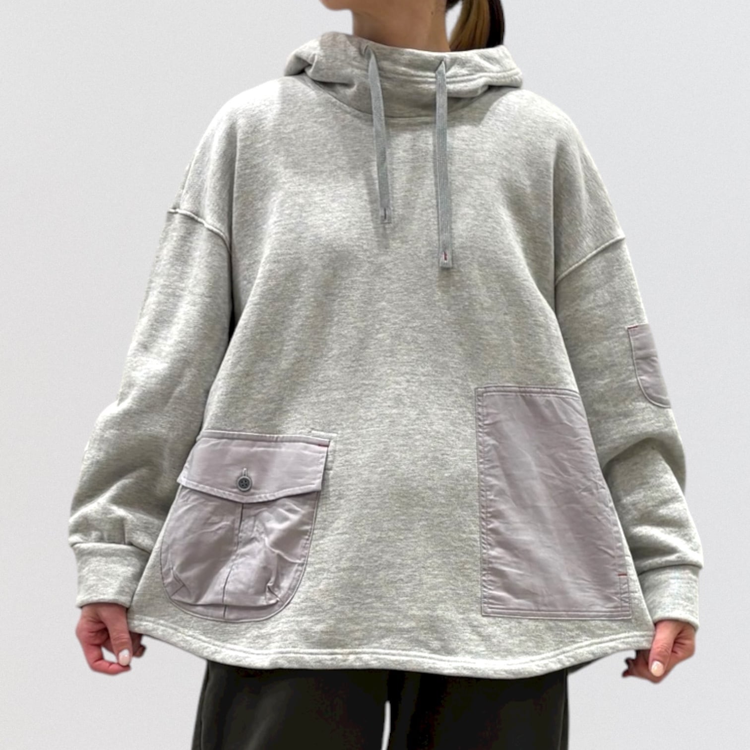 ポケット部分に布帛素材をあしらった異素材コンビ。