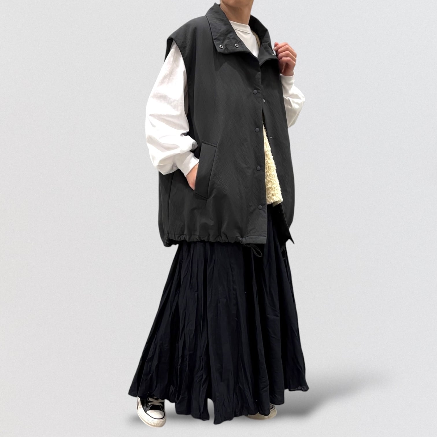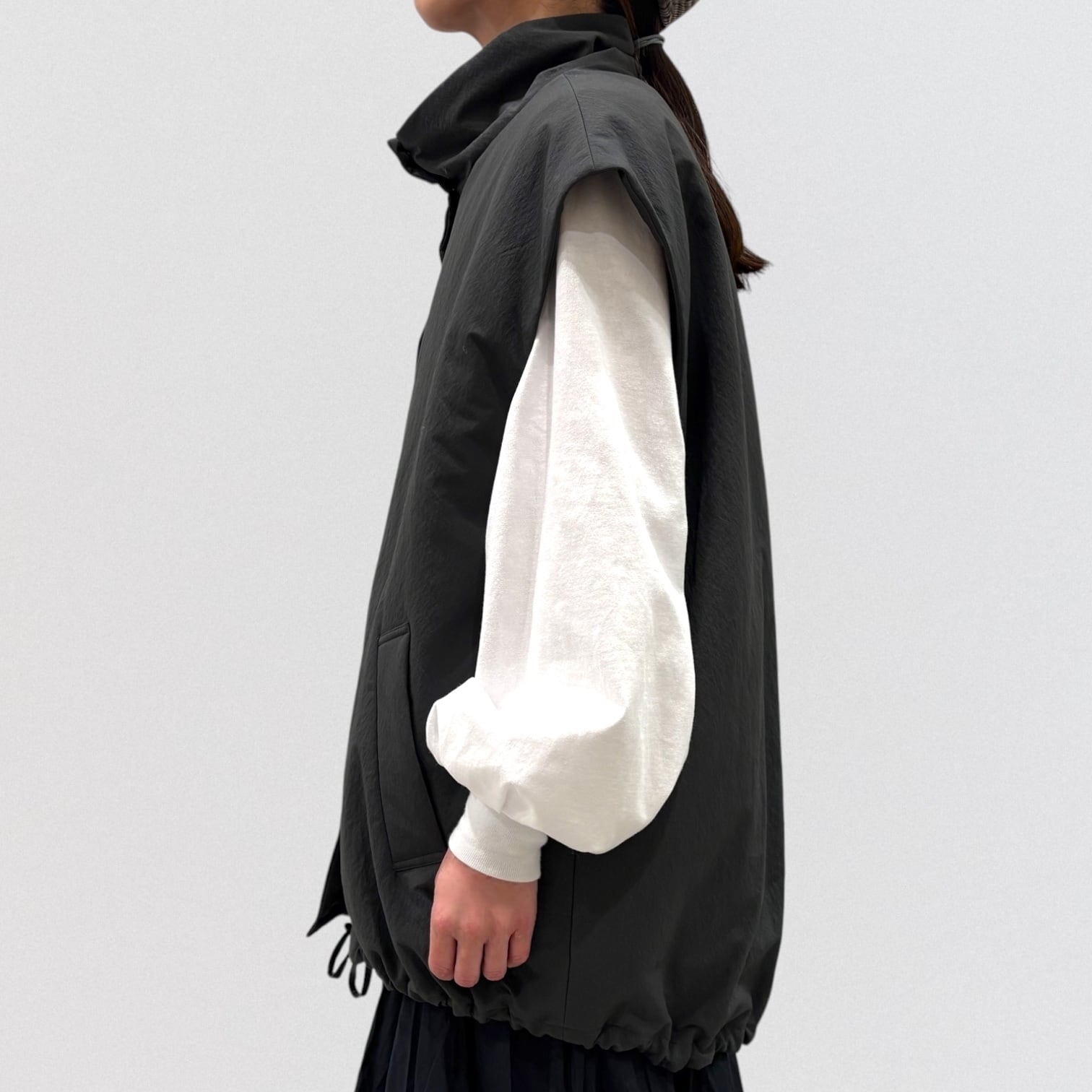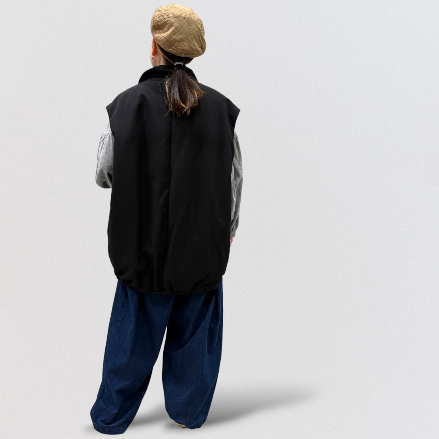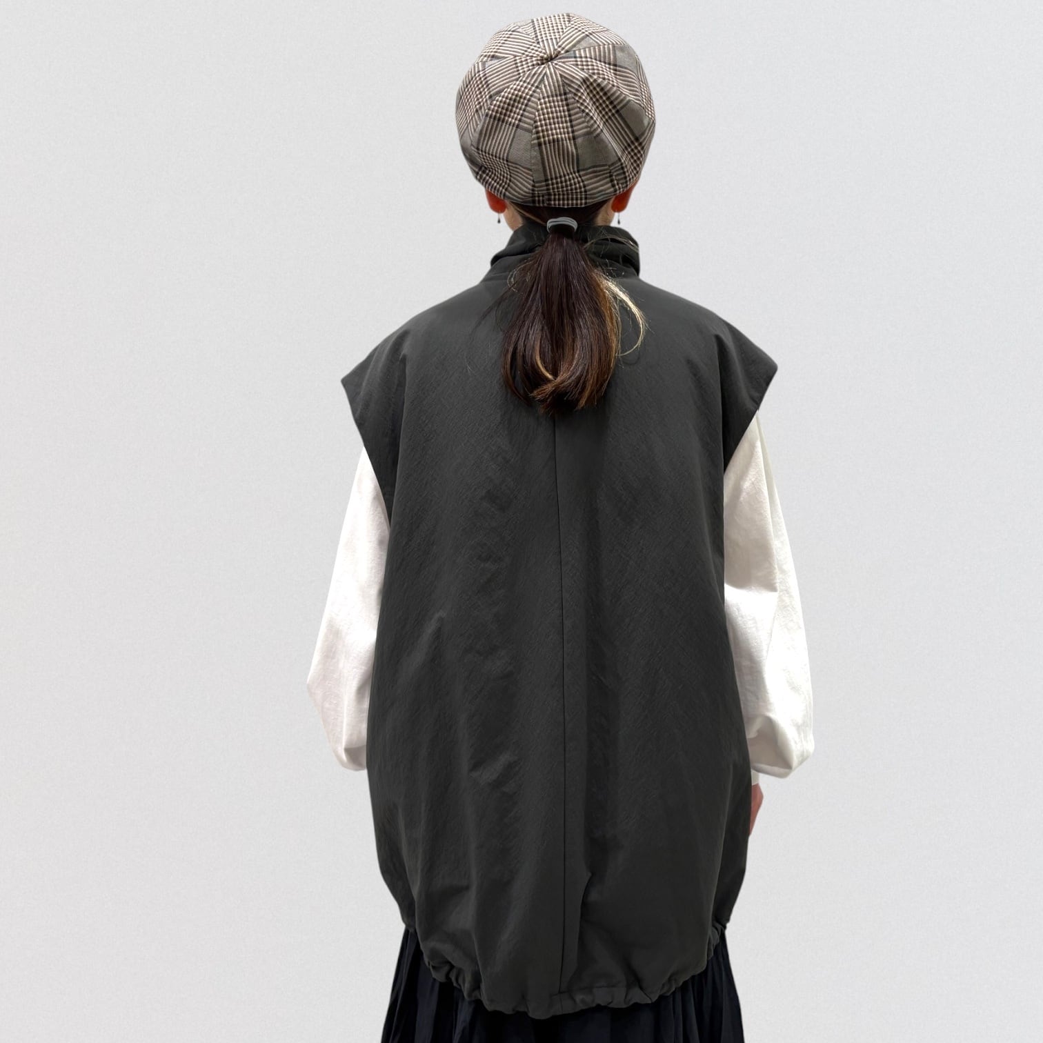 着丈が長くヒップラインまで隠れるベストです。