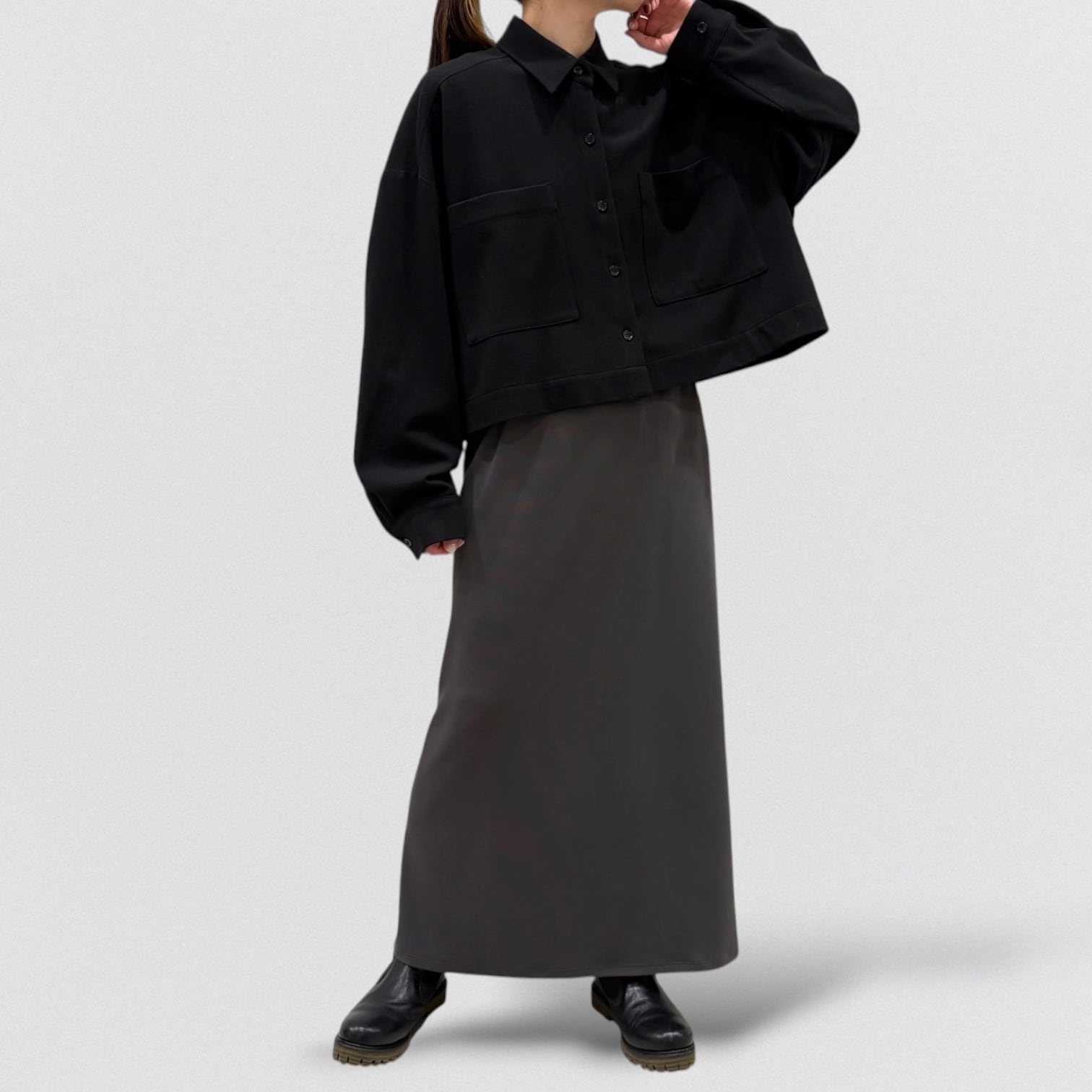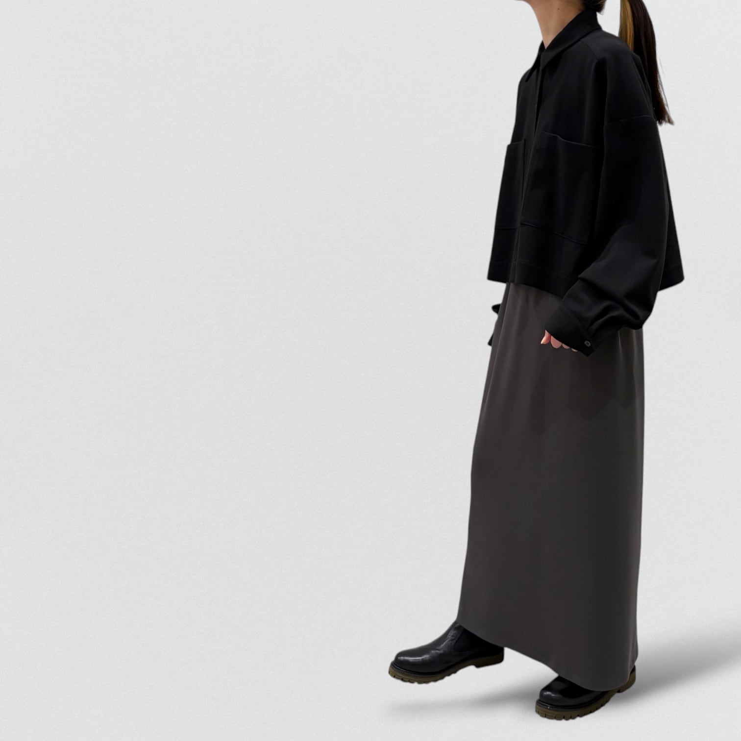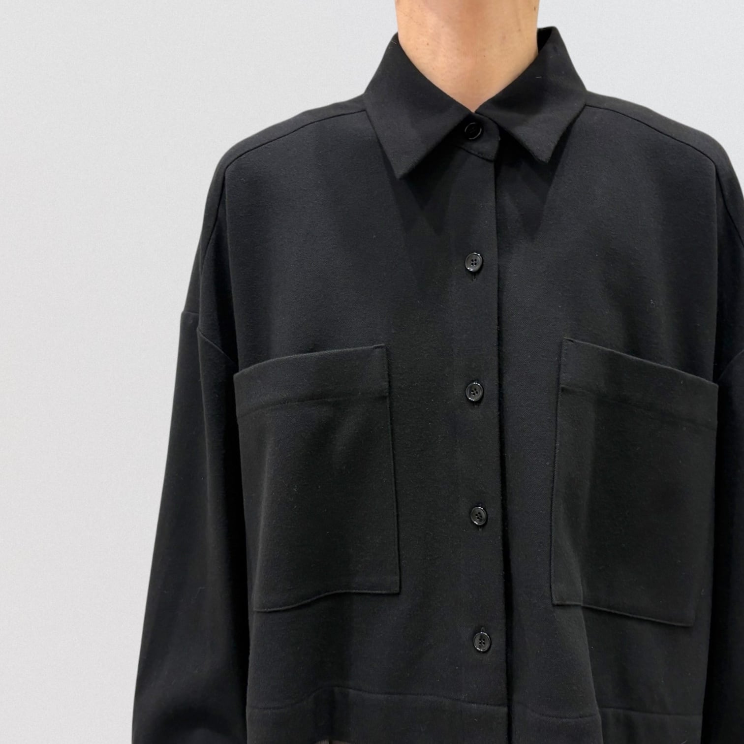 ゆったりした身巾で羽織物としても着られるショート丈のオーバーシャツ。