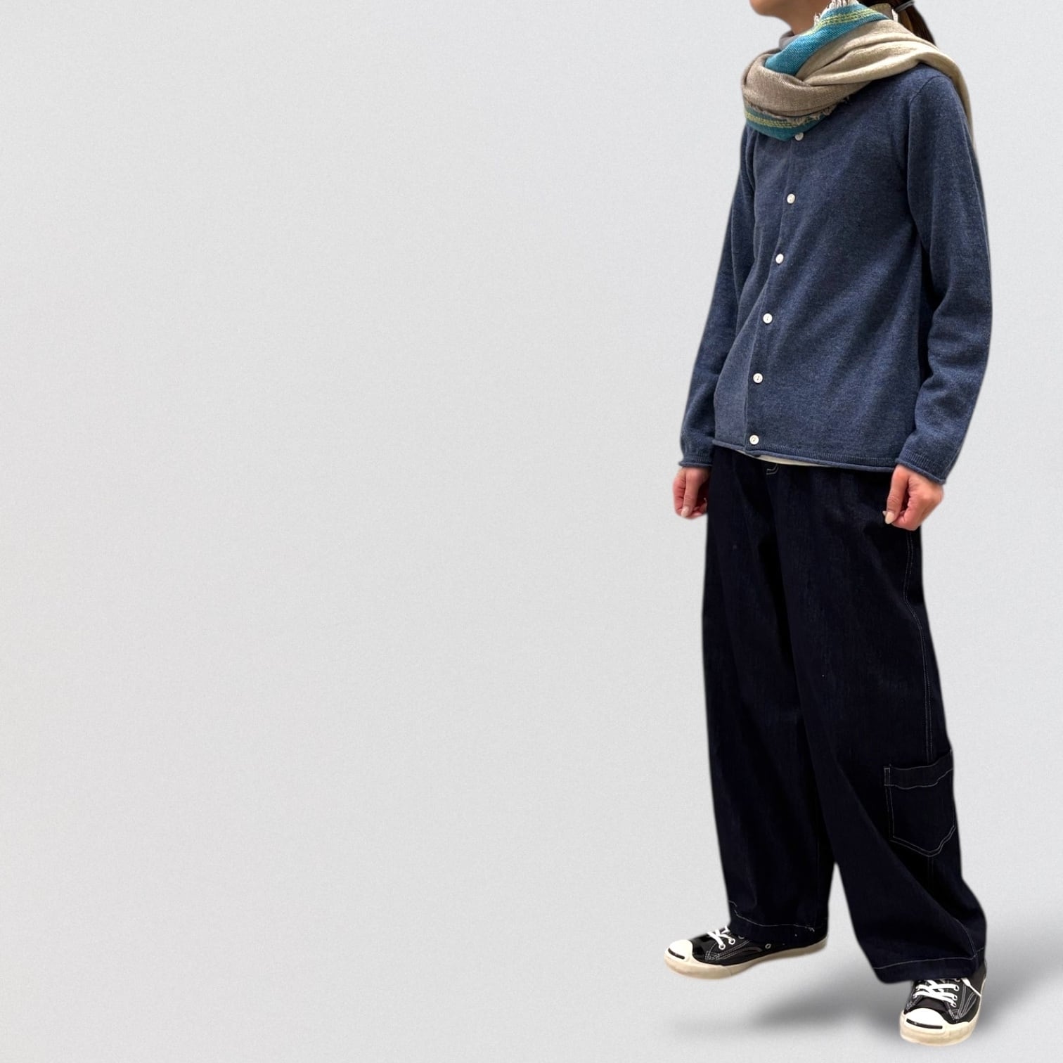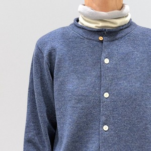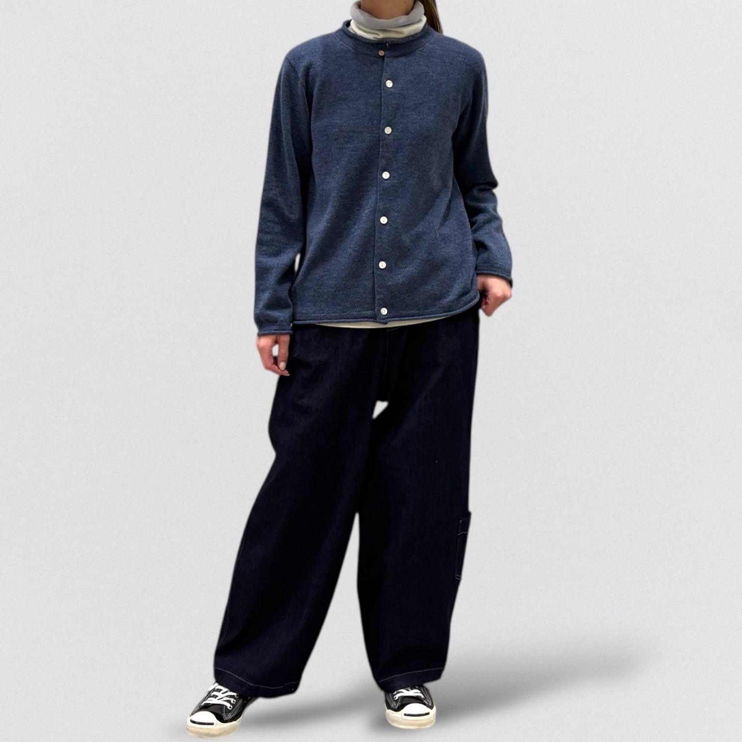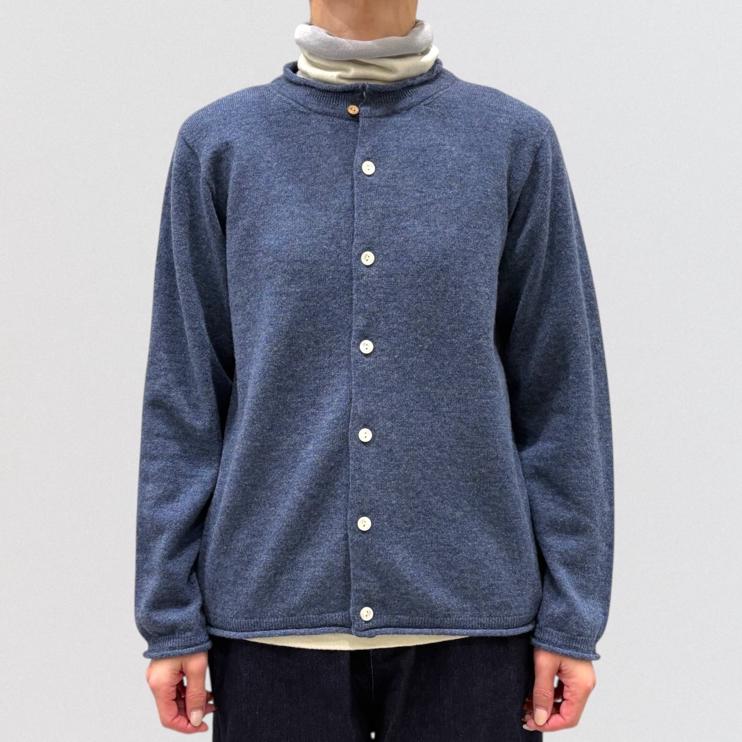 小さめのスタンド襟と裾がくるんとポイントのカーディガン。