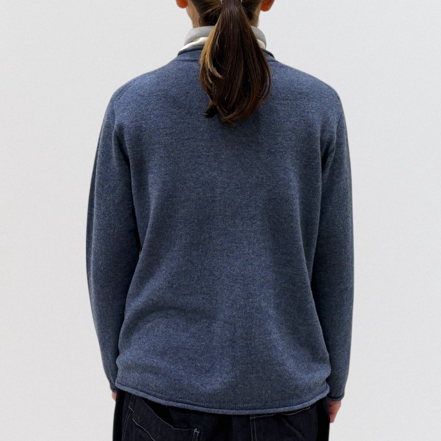 ソフトで着心地が良くちょうど良い厚さで、秋冬の重ね着にも万能なデザインは、定番のアイテムとして活用できます。(OTA KNIT/太田市製ホールガーメント)