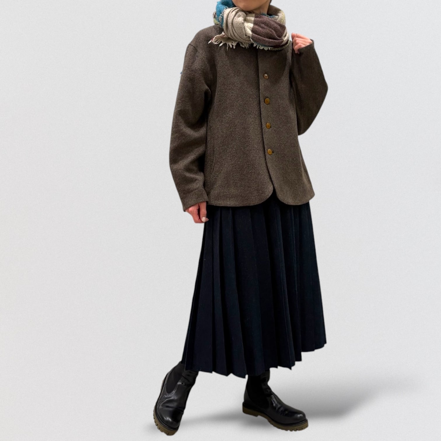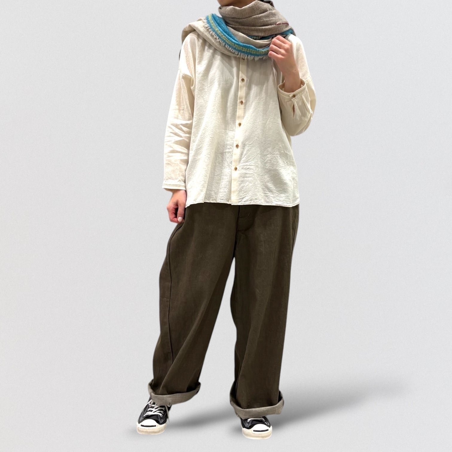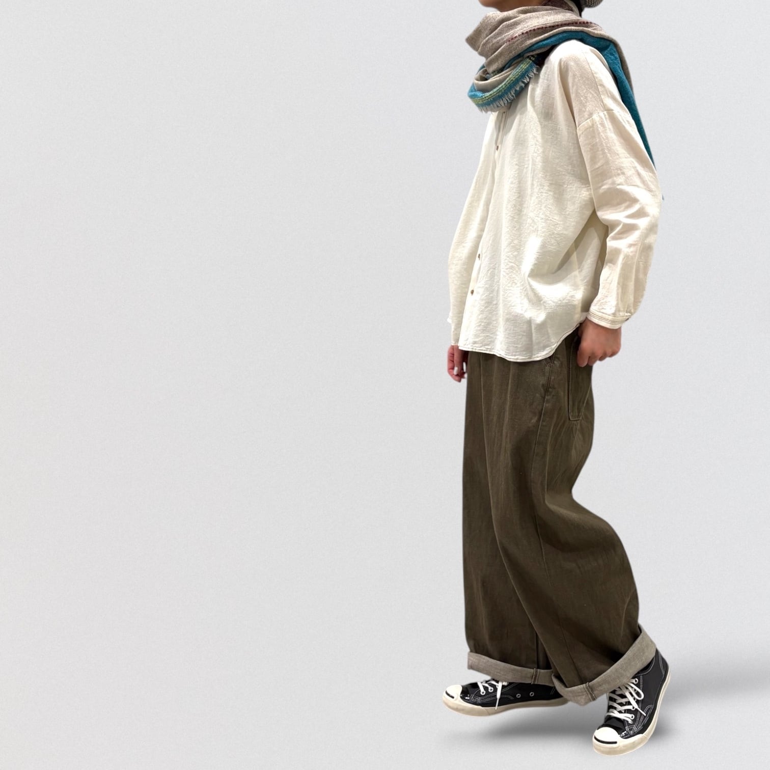 ガーゼ調のワッフル、ツイル織りにブークレーのステッチラインでポイントを付けています。