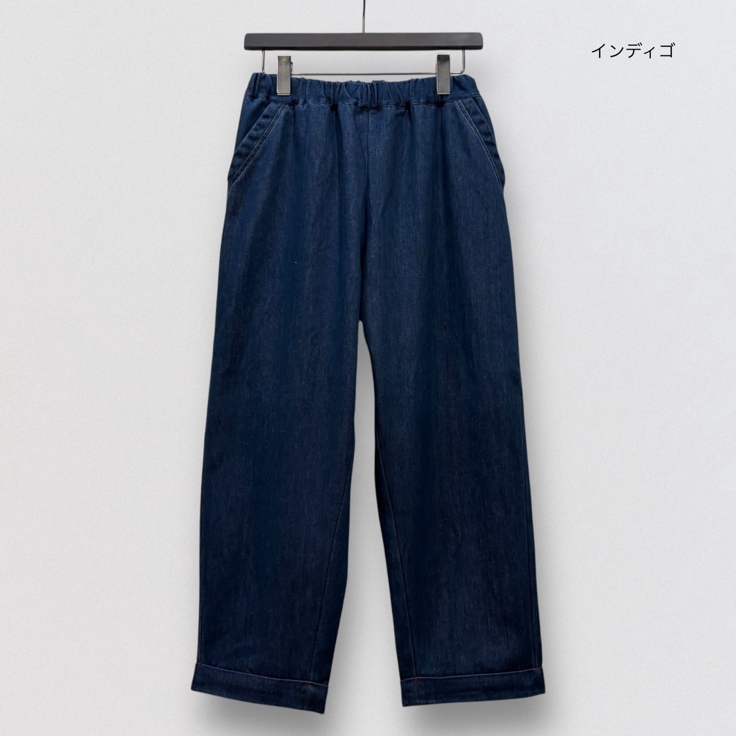 後ろポケットと裾折り返し部分の赤糸ステッチがポイント。