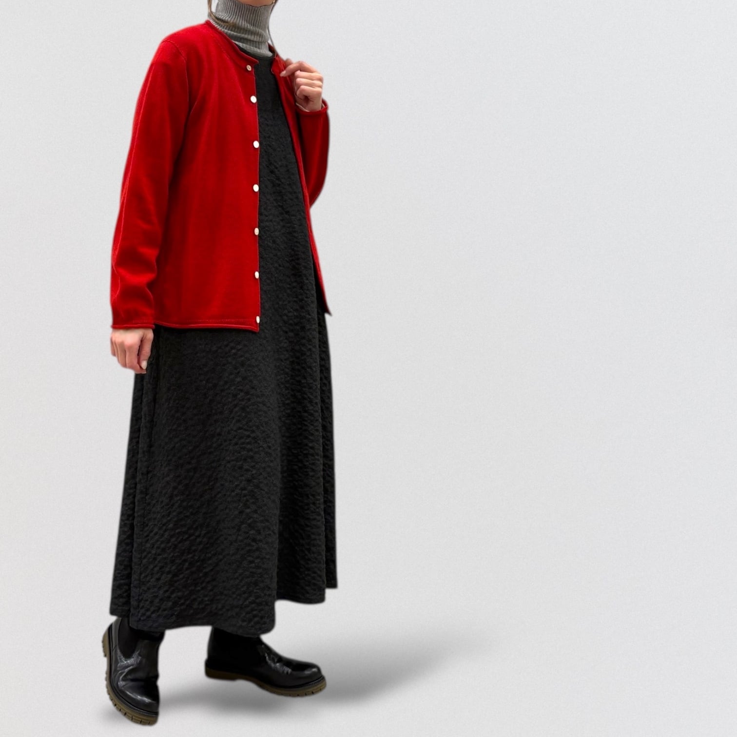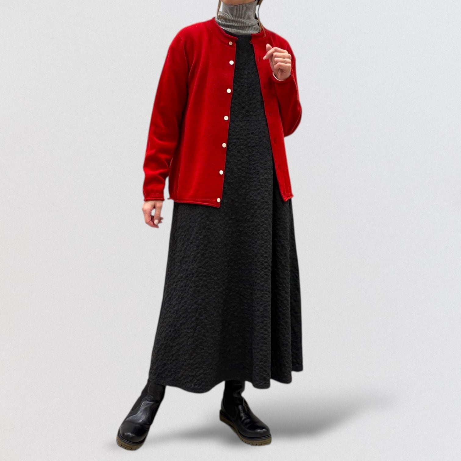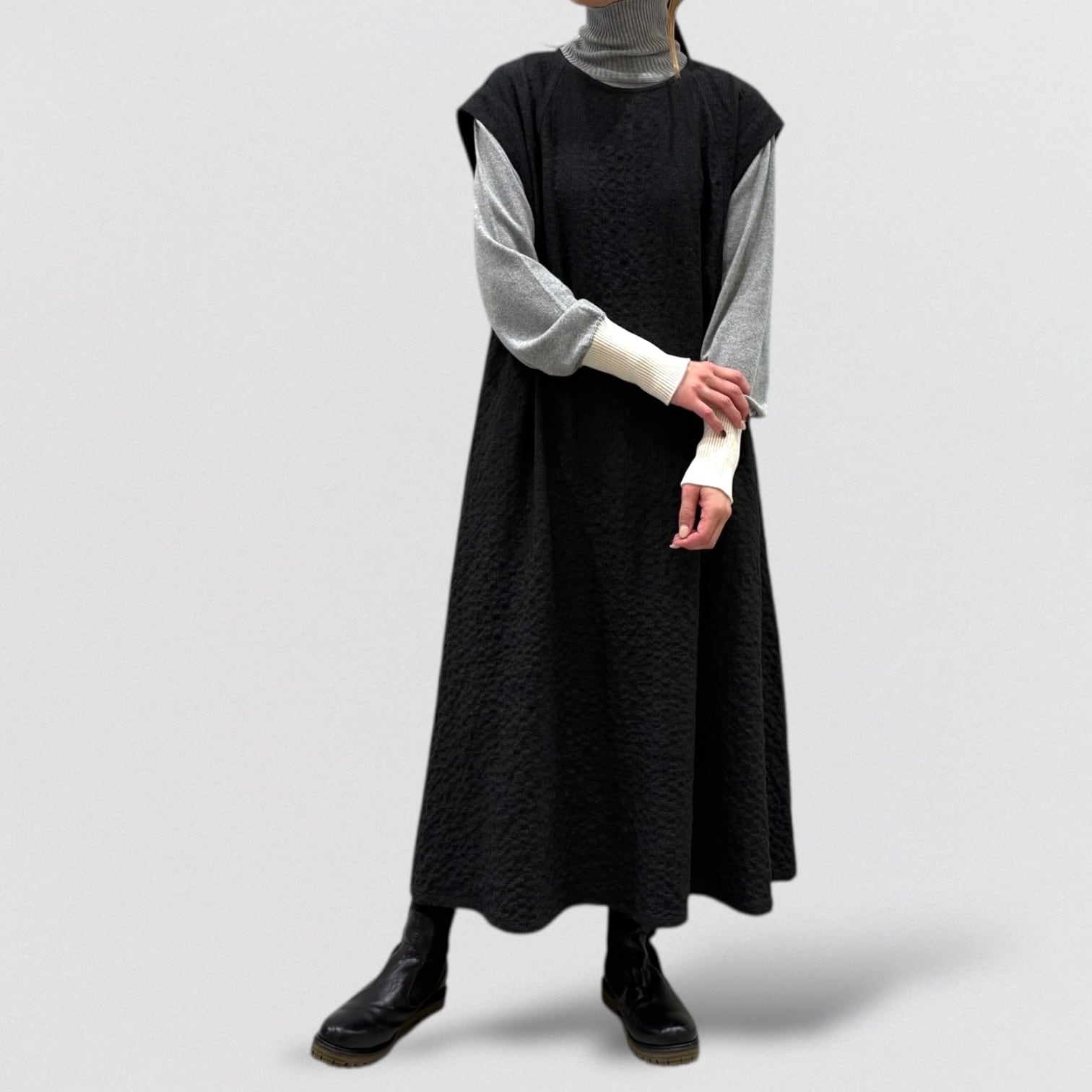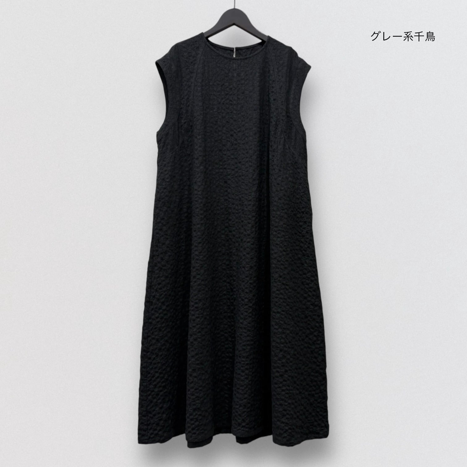 凹凸感のあるシャーリングに細かい千鳥柄でシワが目立ちにくいです。