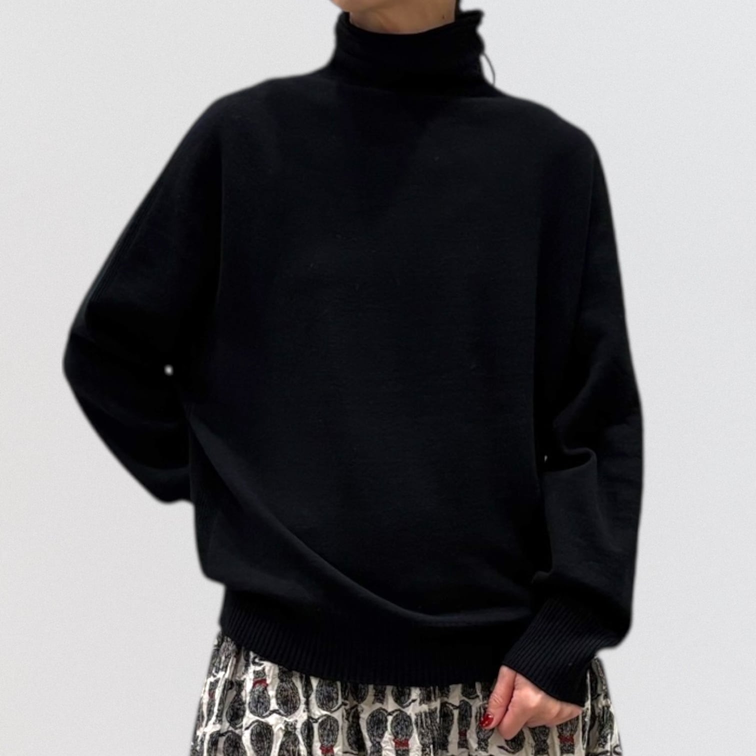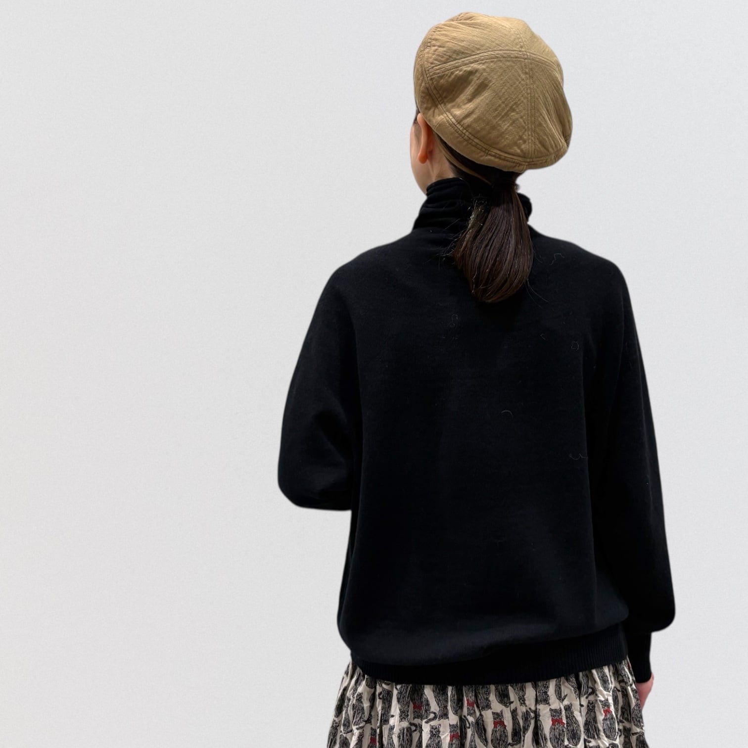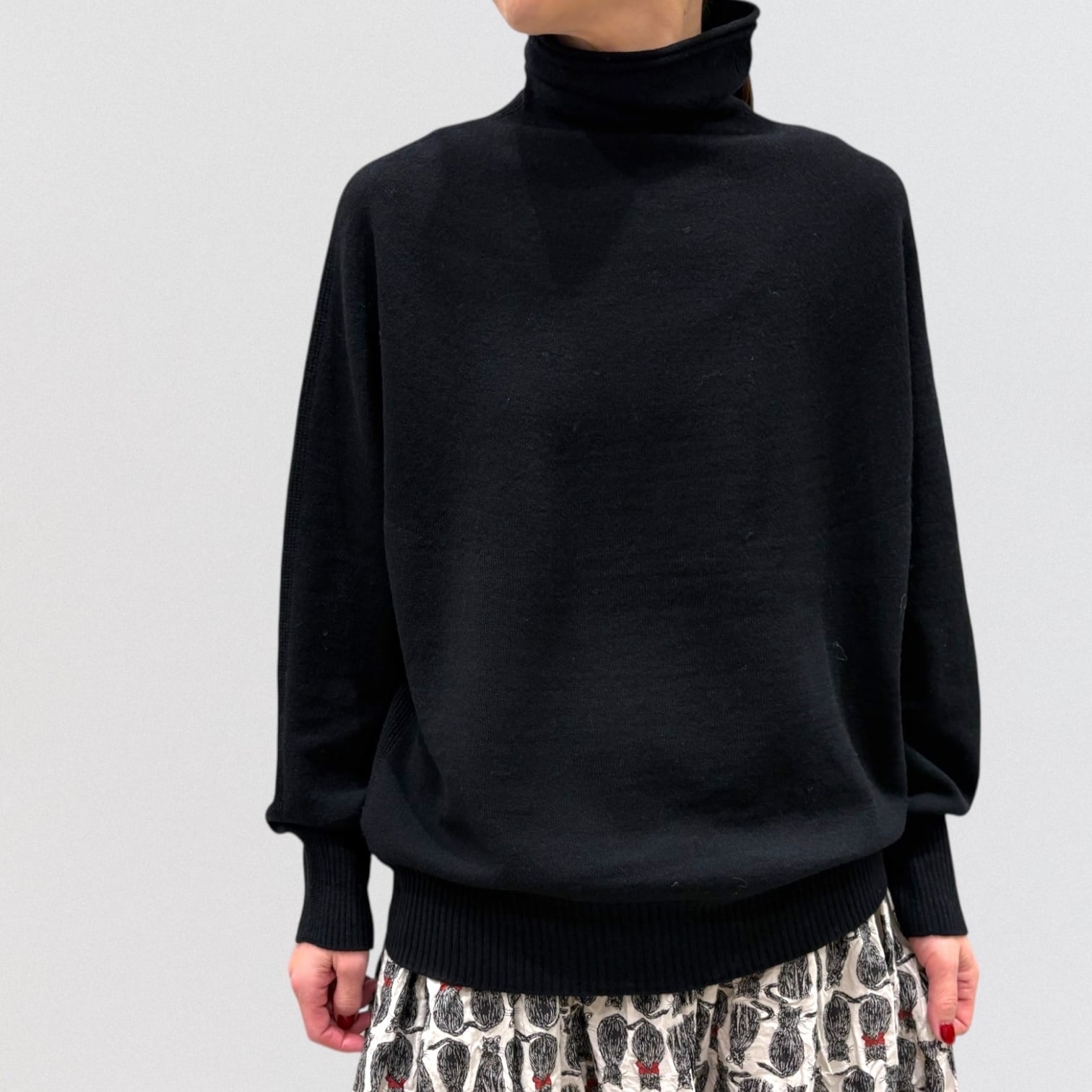 窮屈感のない付かず離れずなネックラインが着やすいニットです。