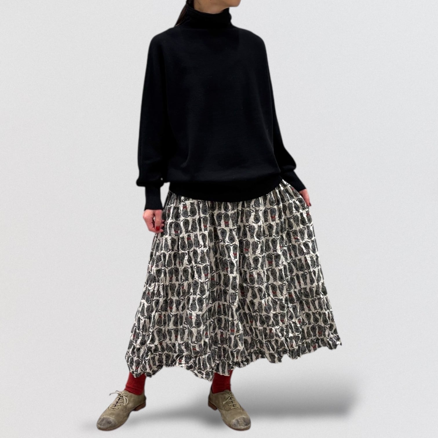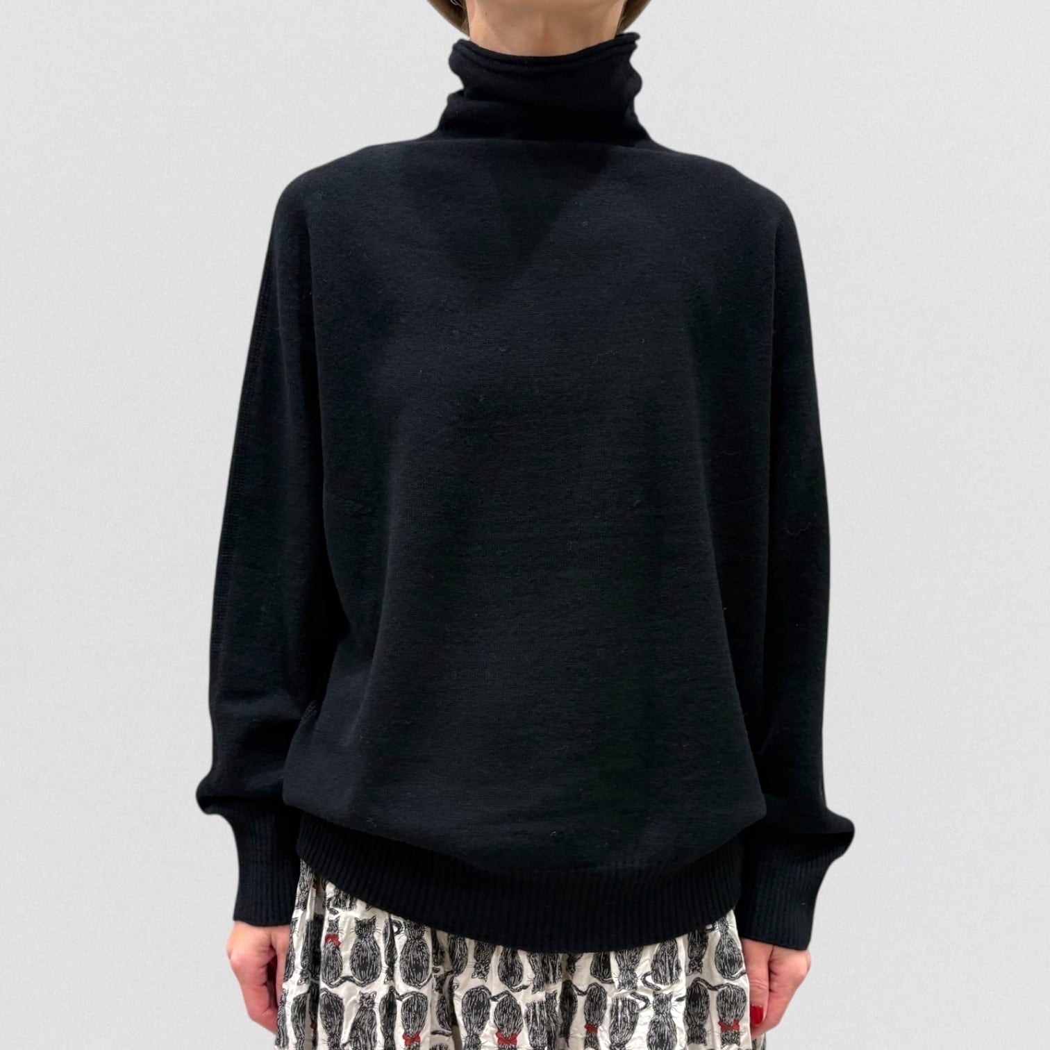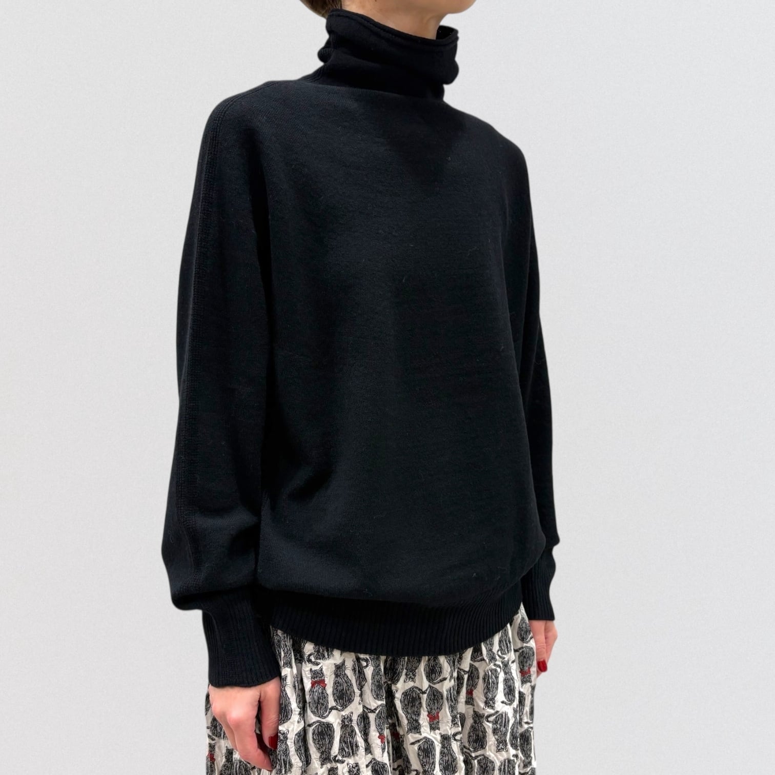 窮屈感のない付かず離れずなネックラインが着やすいニットです。