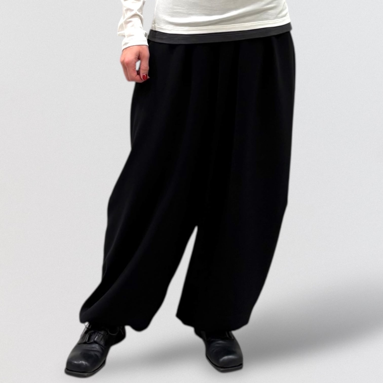 裾にはゴムが入っており丸みのある裾ラインを表現。