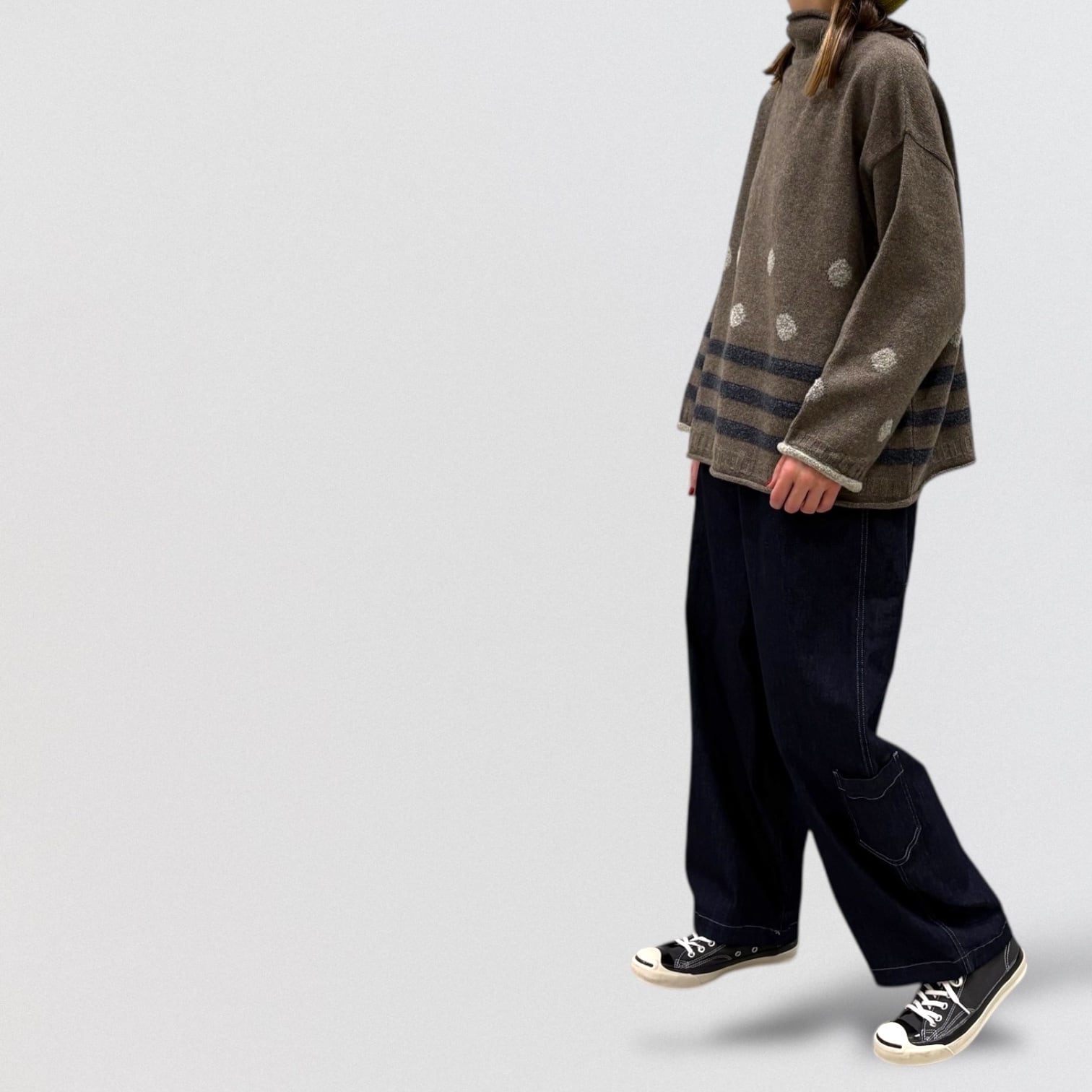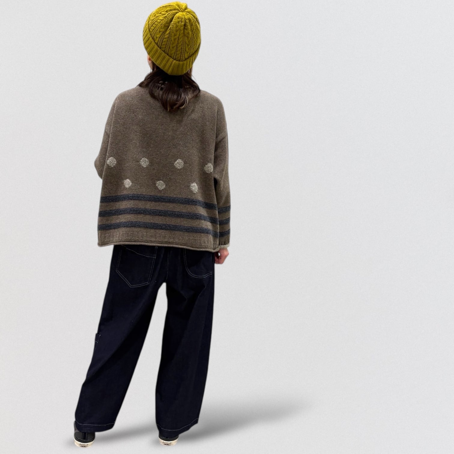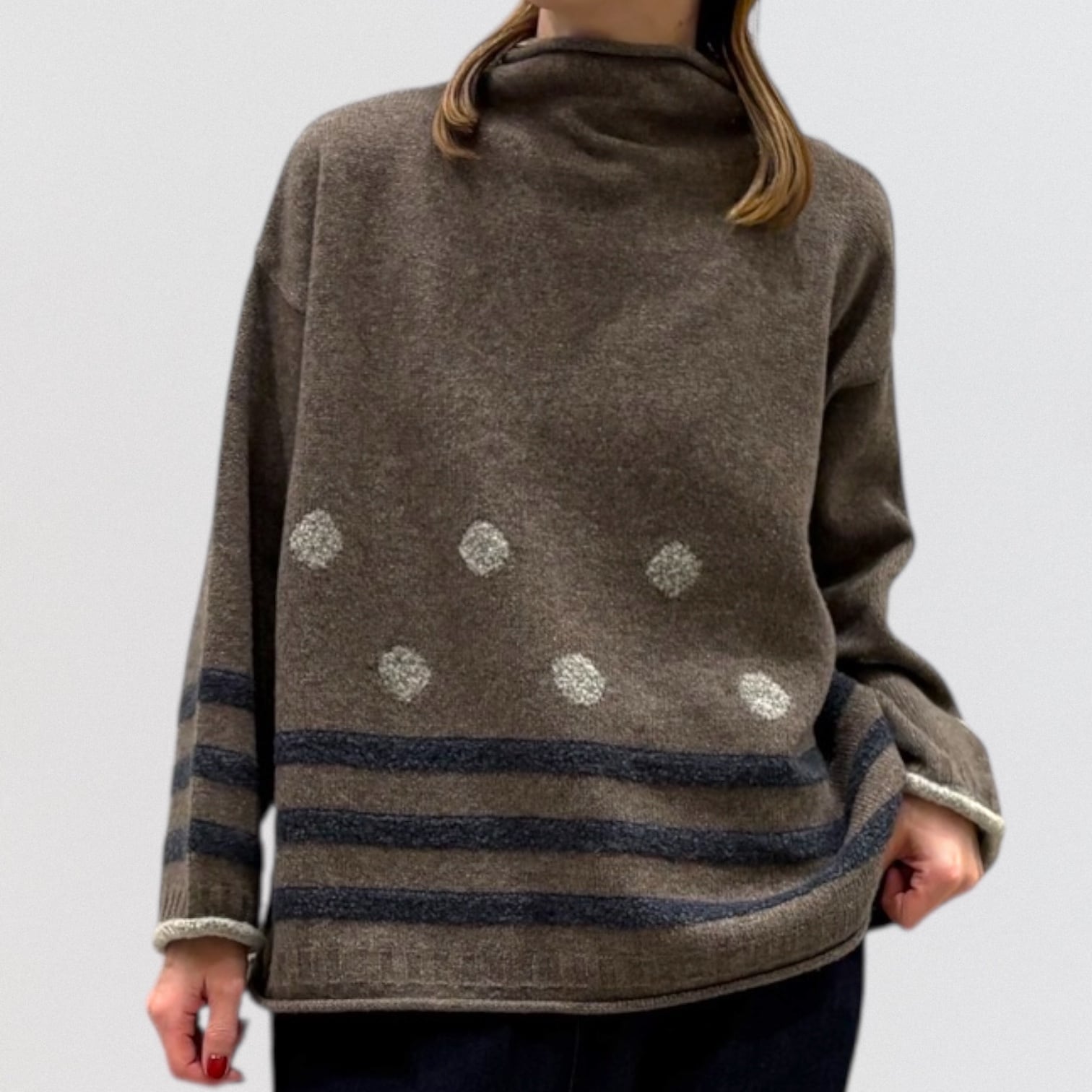 ドットとボーダーのジャガードセーターです。
