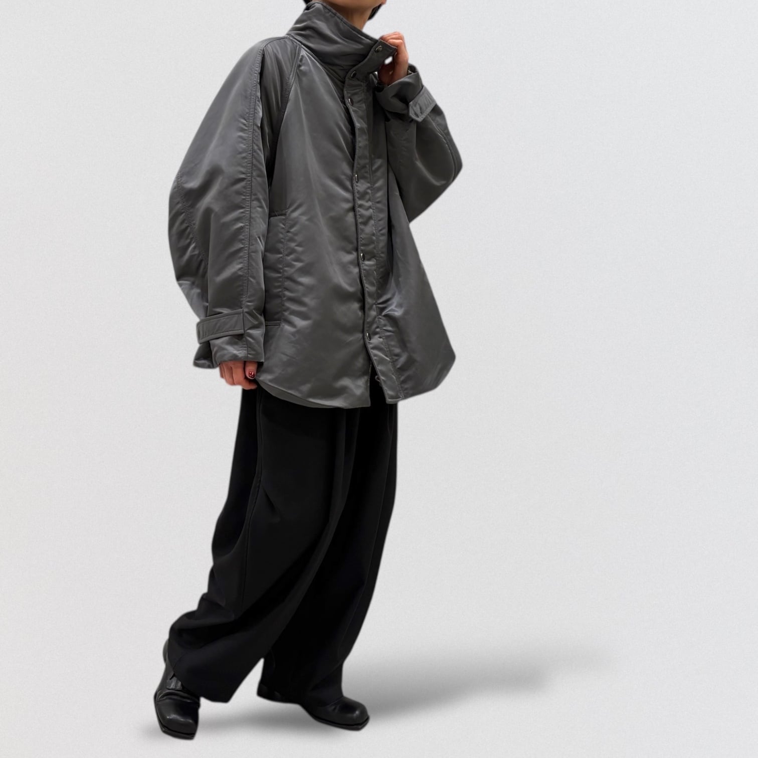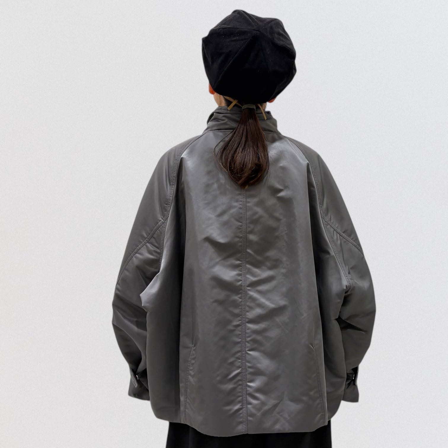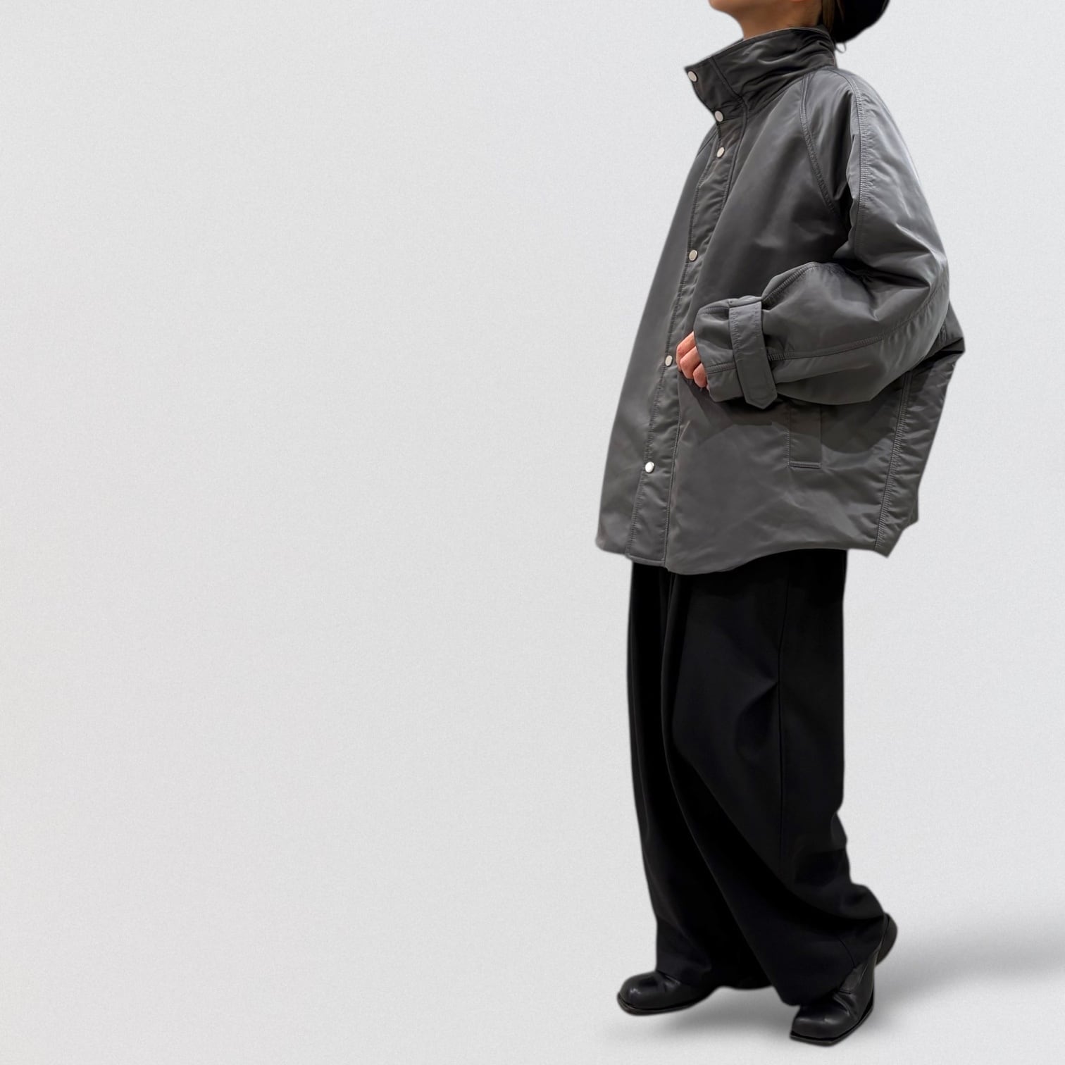 スタンドカラーでゆったりしたシルエット。