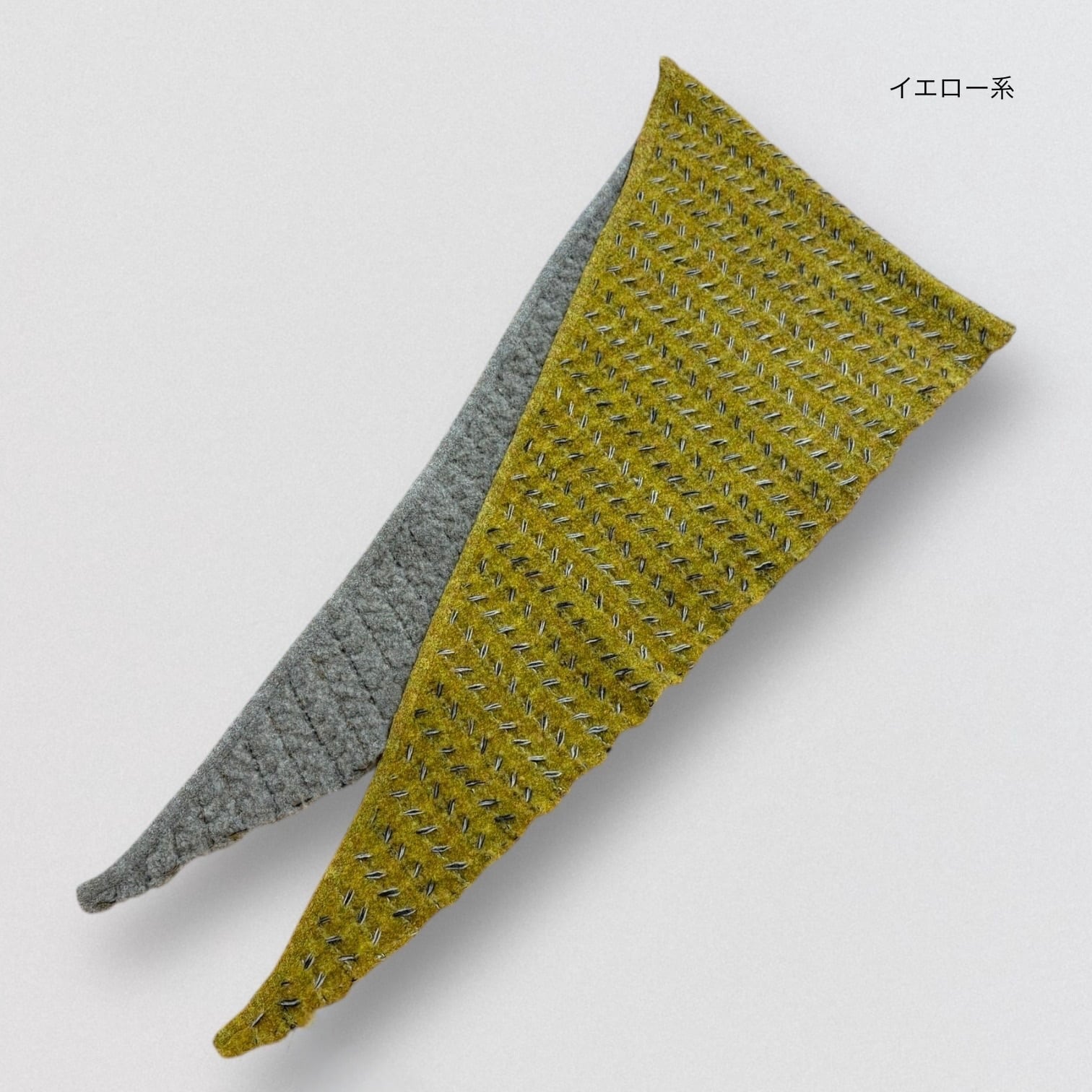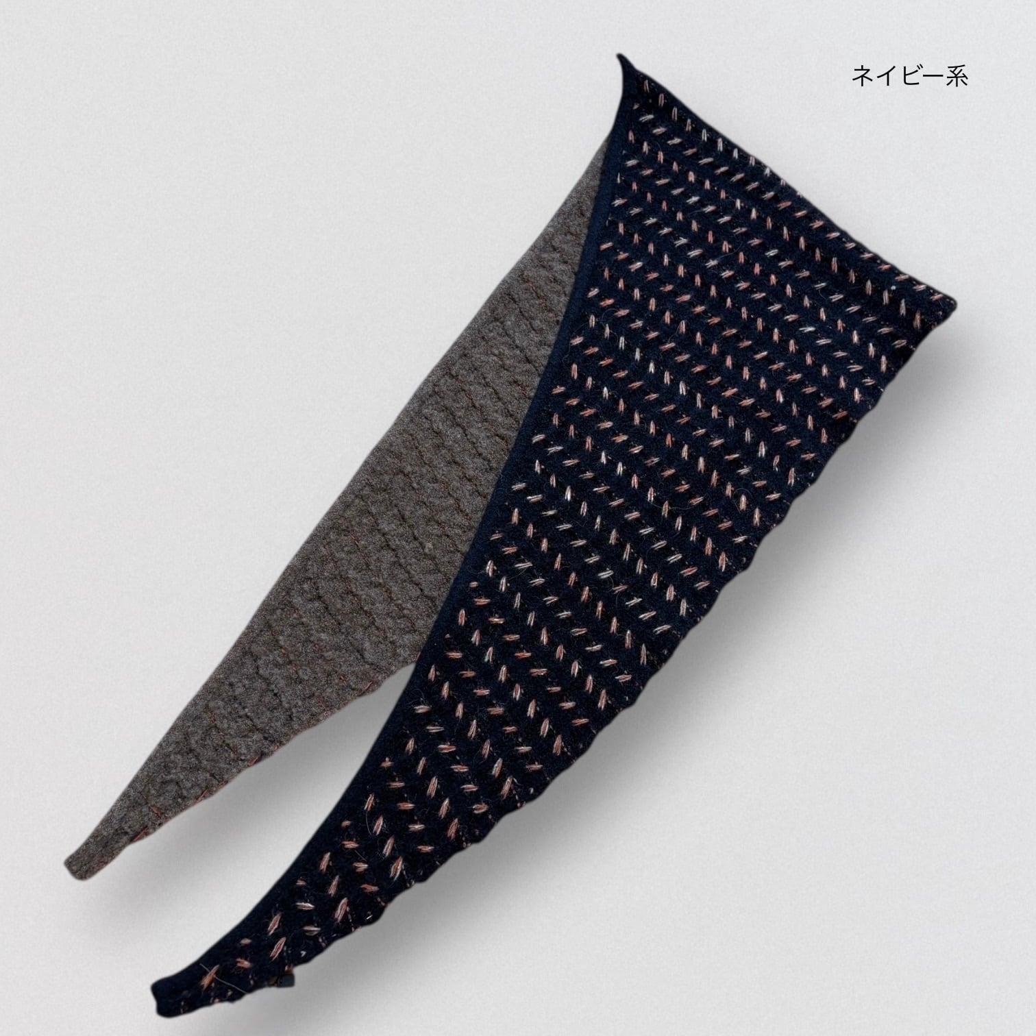 三角デザインで巻くだけでかたちが決まりやすく着用しやすいストールです。