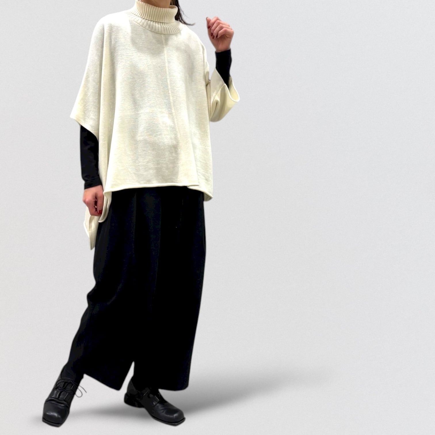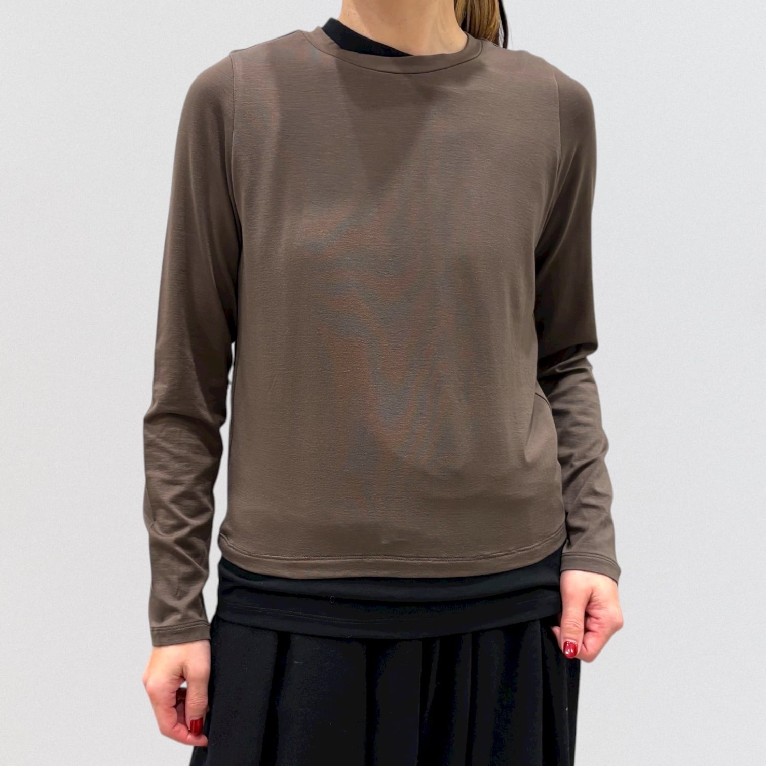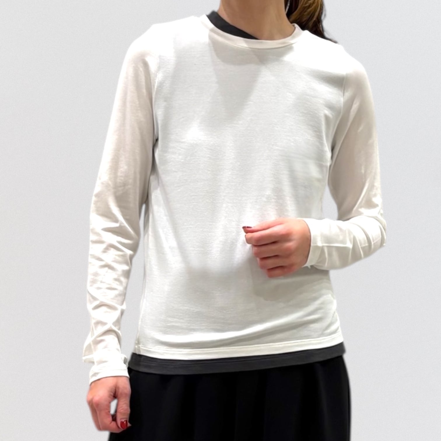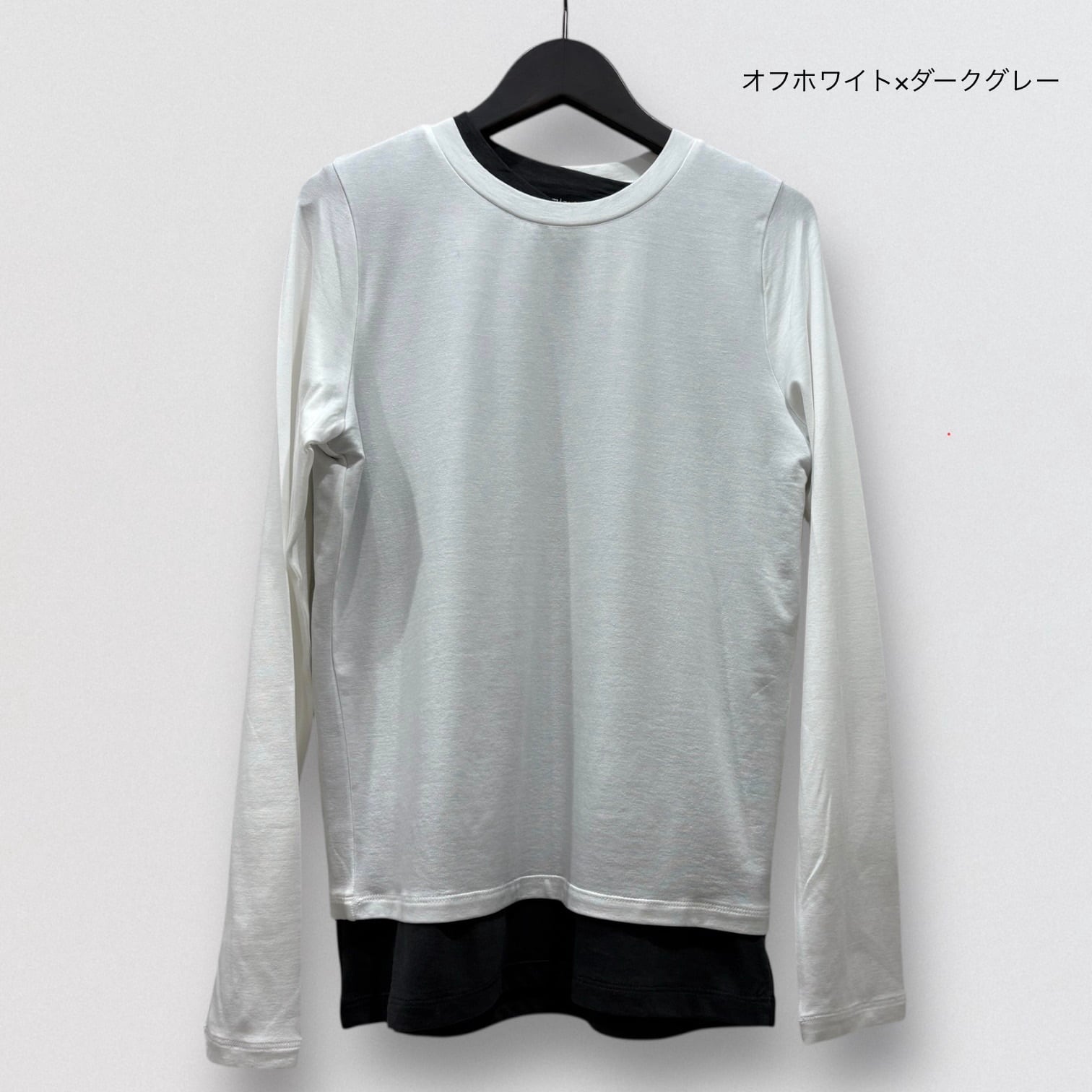 1枚で重ね着をしているようなデザインでインナー使いにも重宝します。
