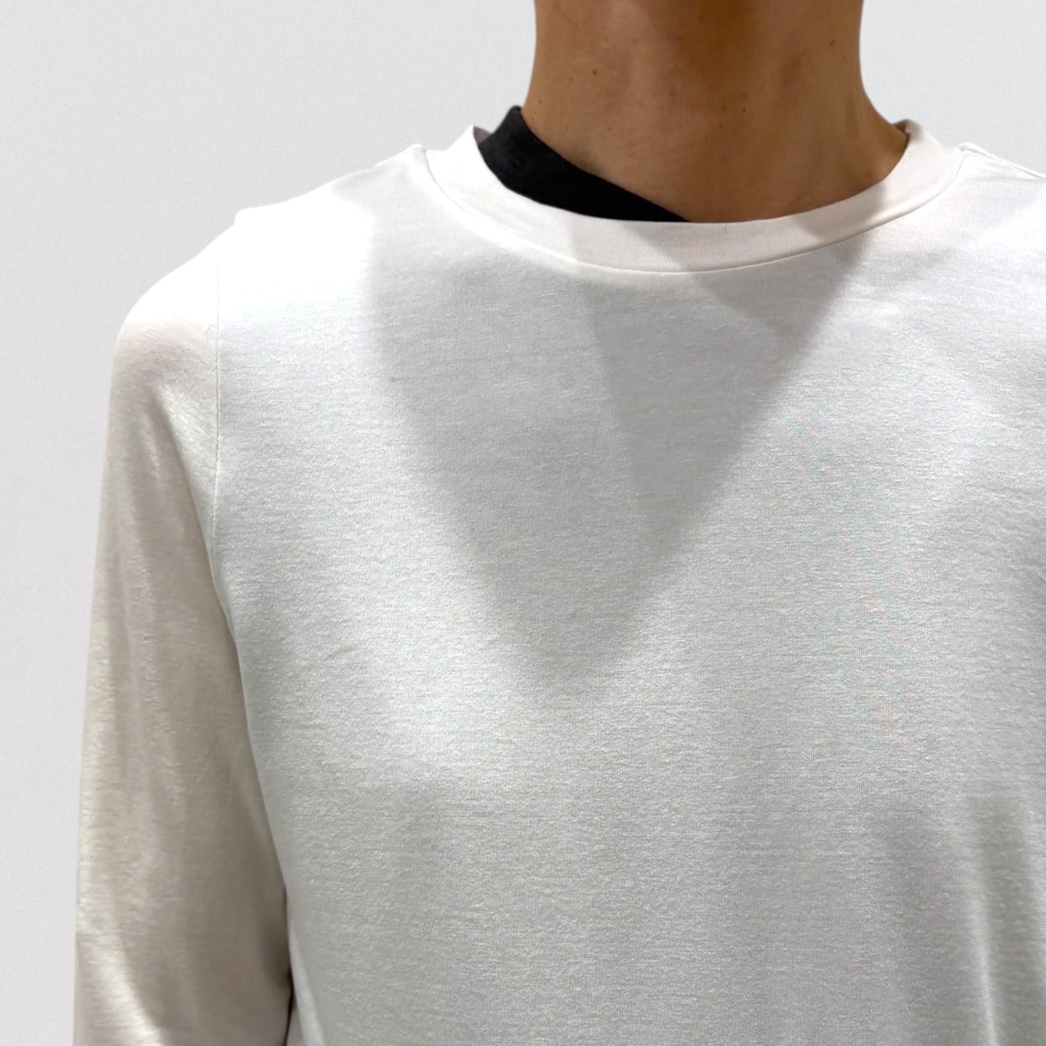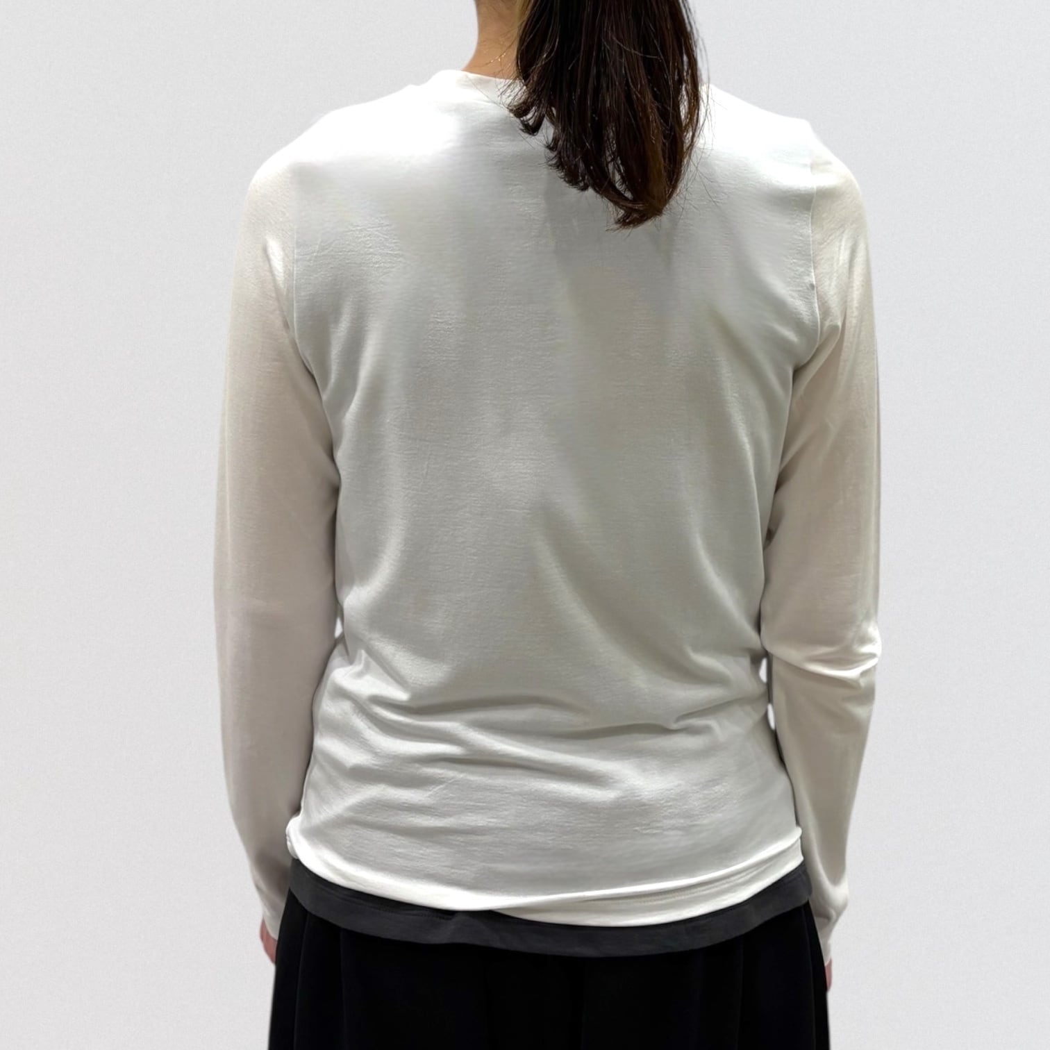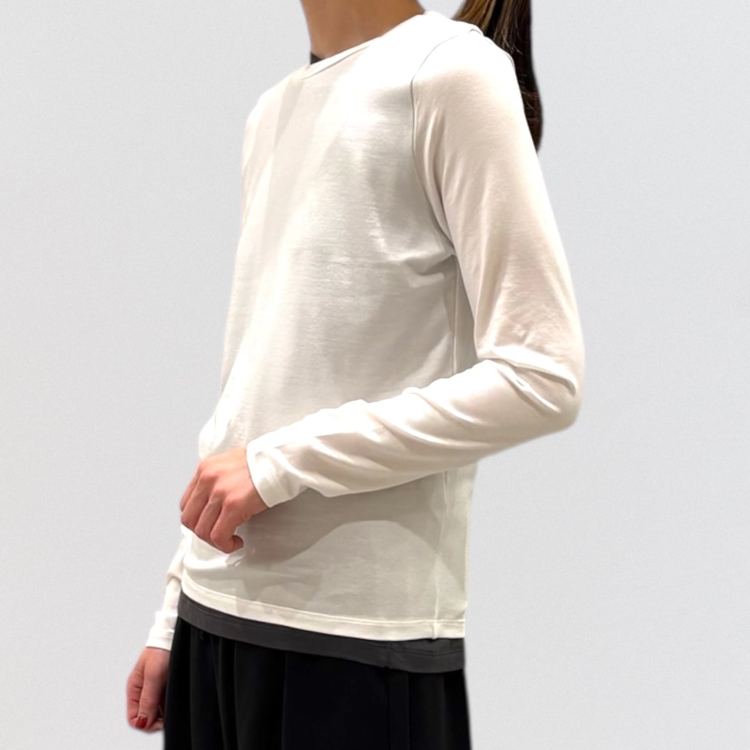 細身でシンプルなシルエットを表現したカットソーで、さらっとした生地感がポイント。