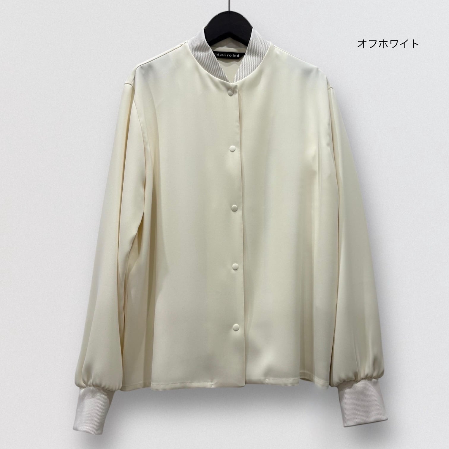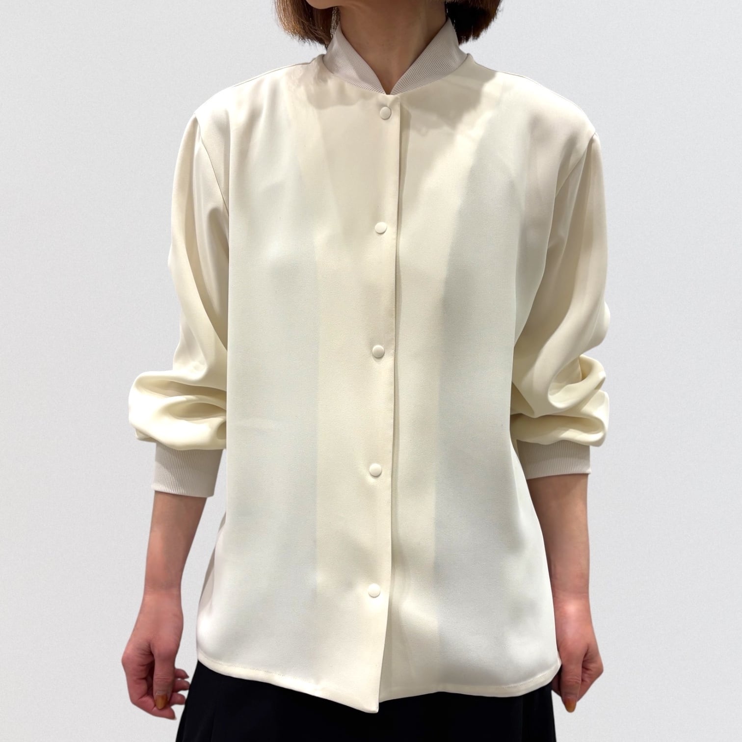 ドレープ感のあるポリエステル素材でデザインしたブルゾンライクシャツです。