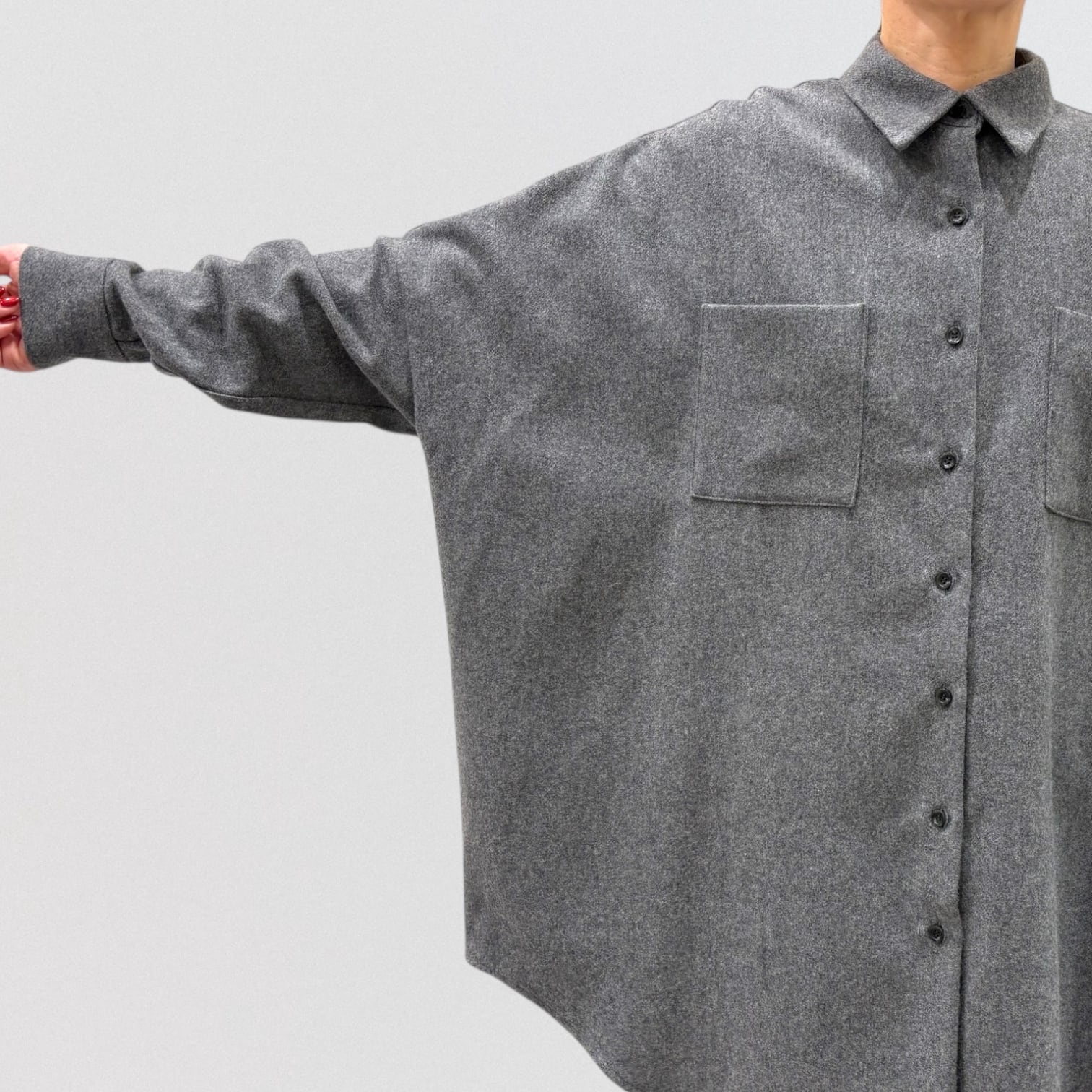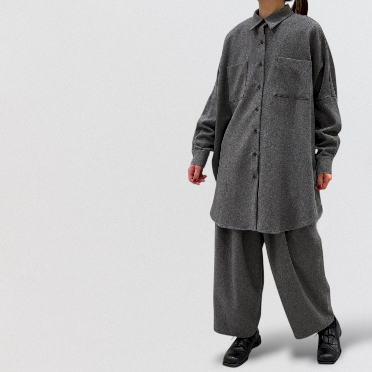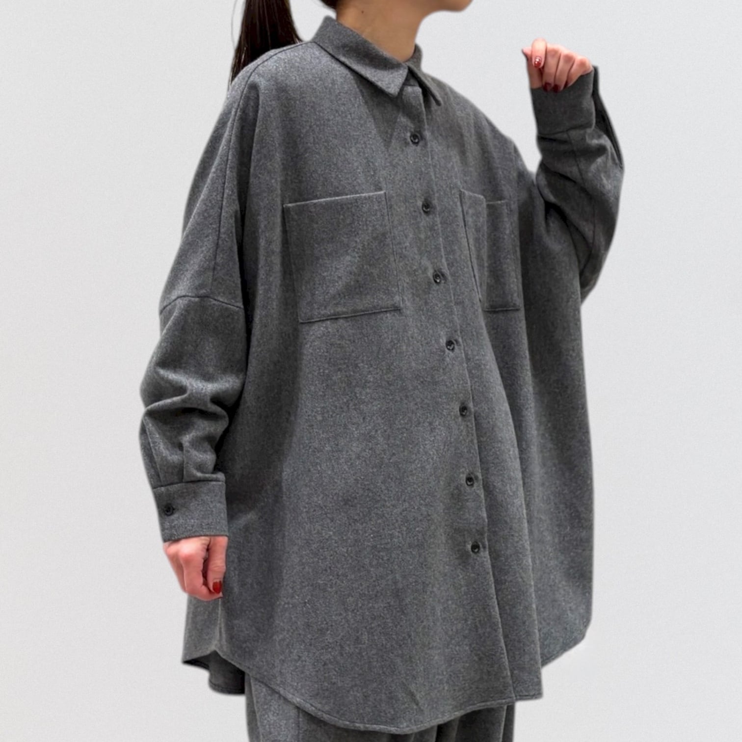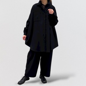 ストレッチのきいた微起毛素材を使用したポケット付きワイドシャツです。
