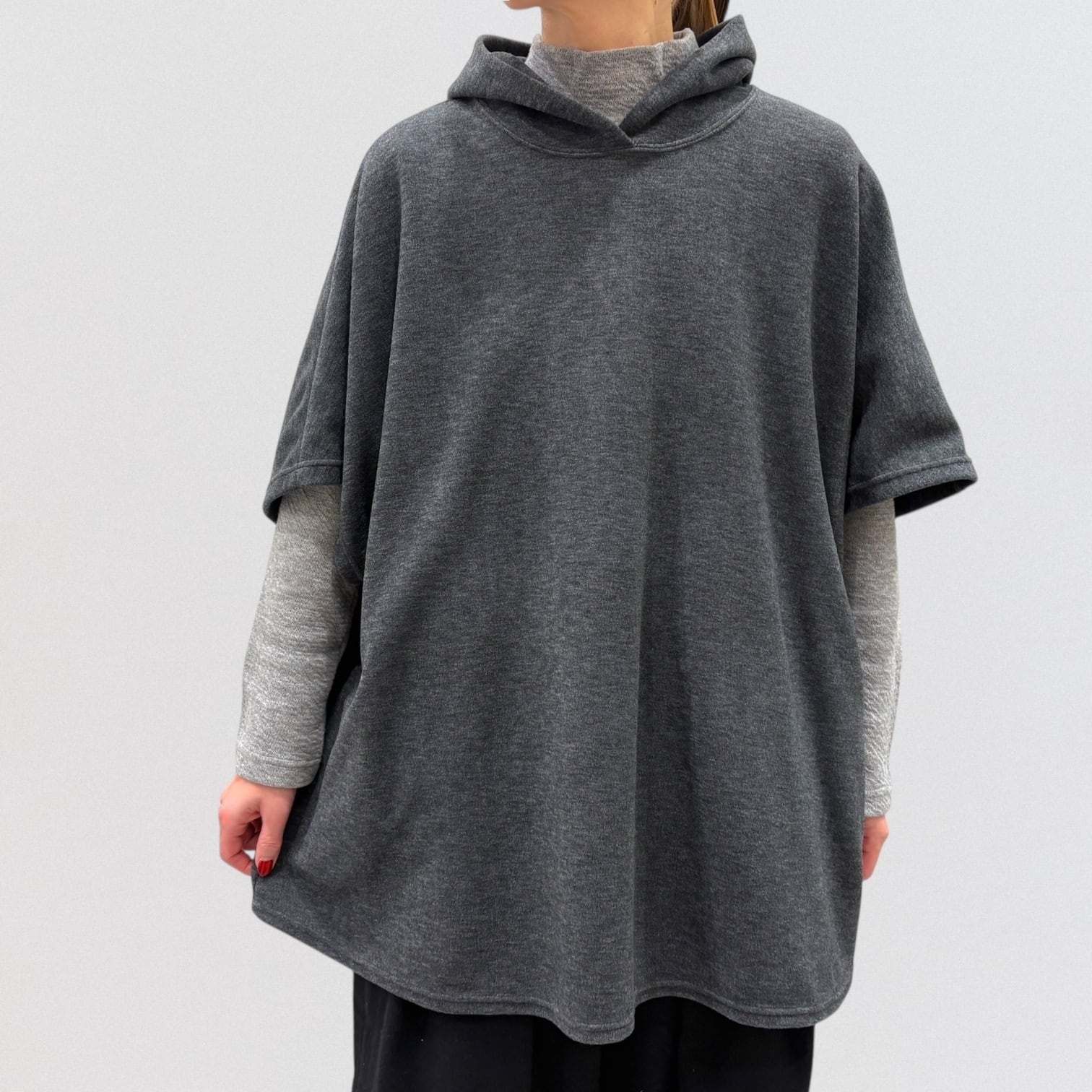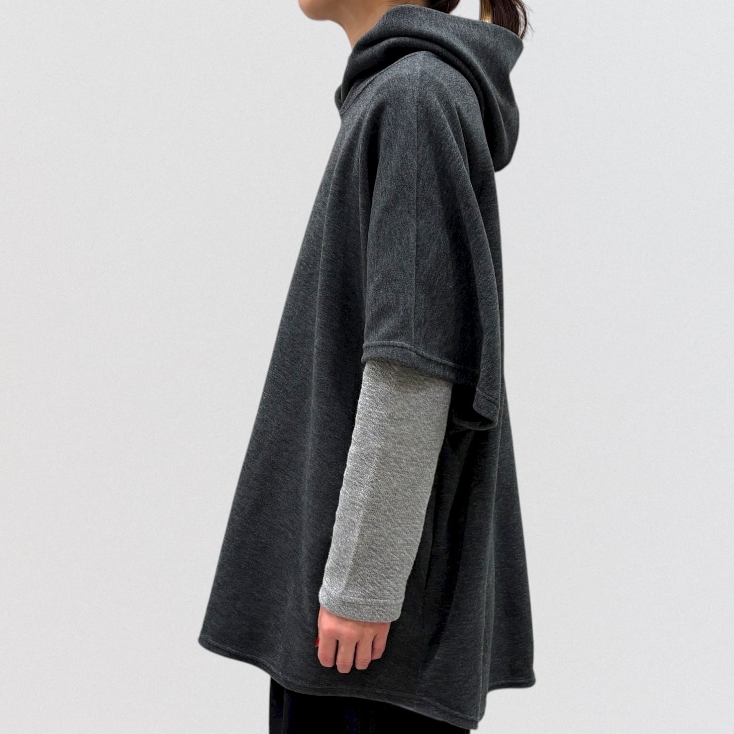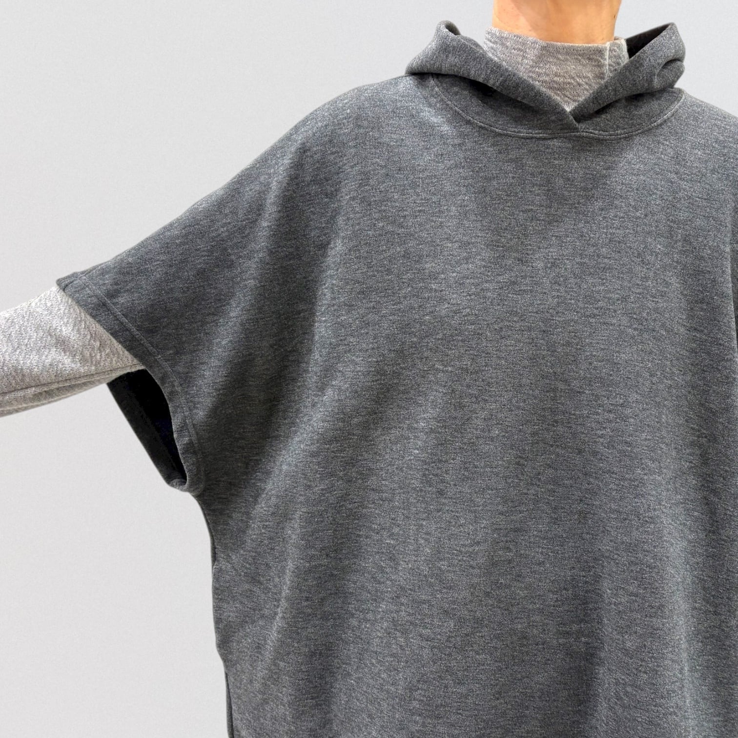 ゆったりしたシルエットのフードベストです。