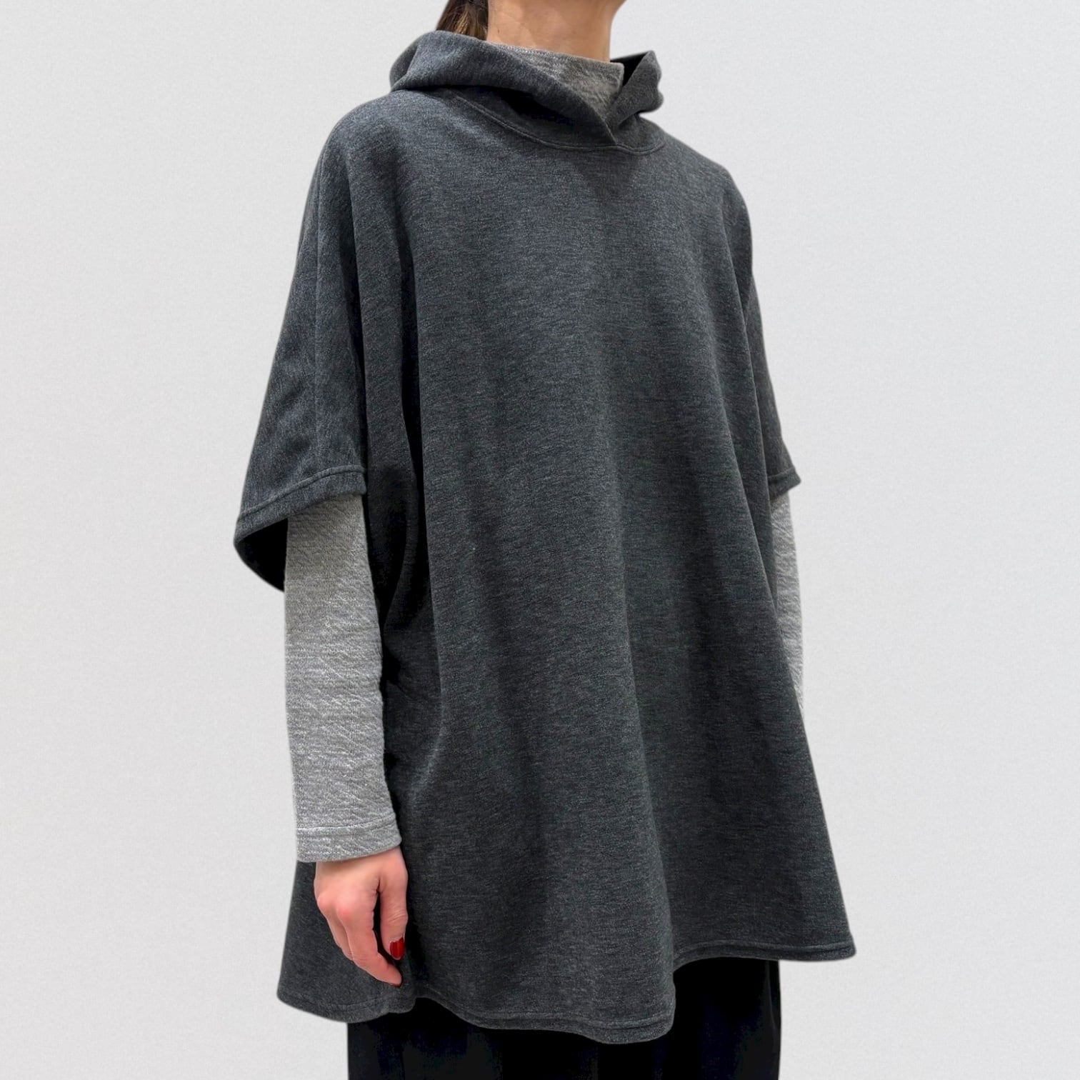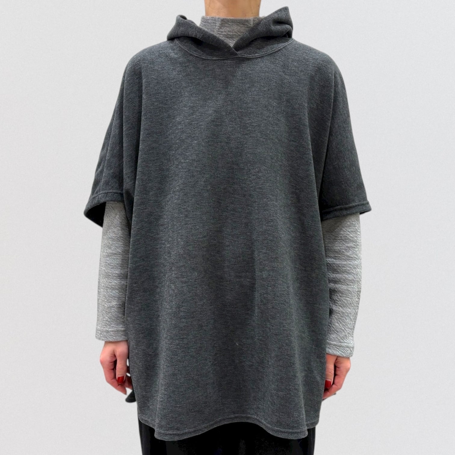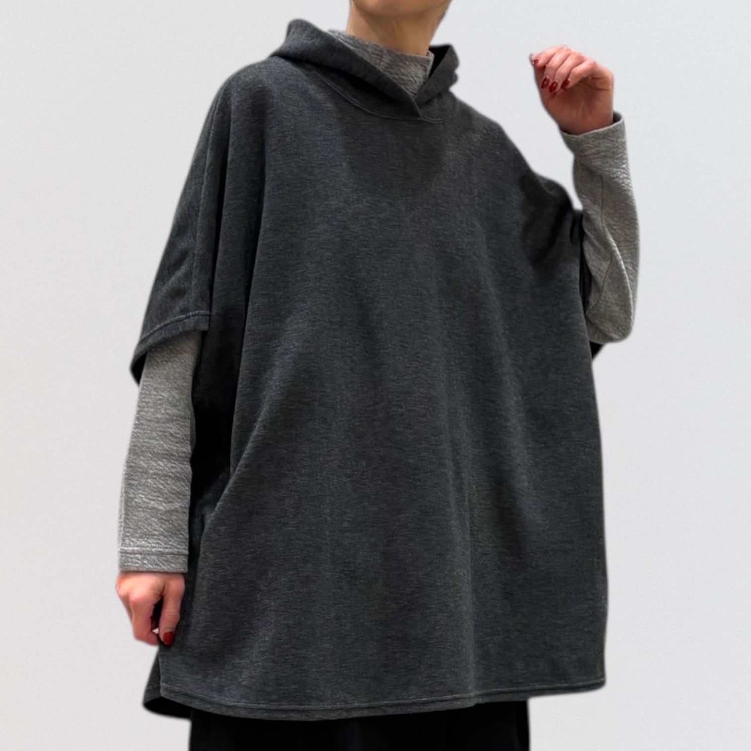 ゆったりしたシルエットのフードベストです。
