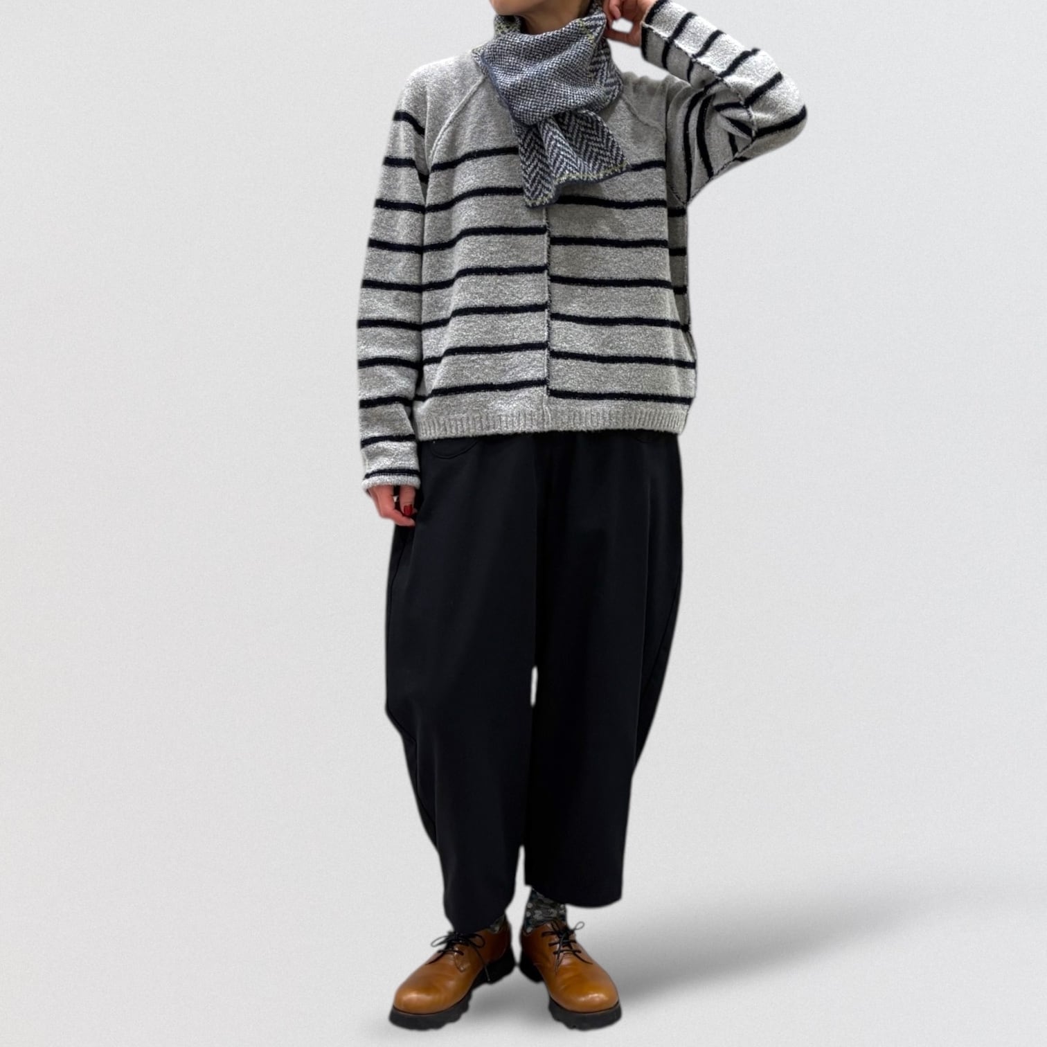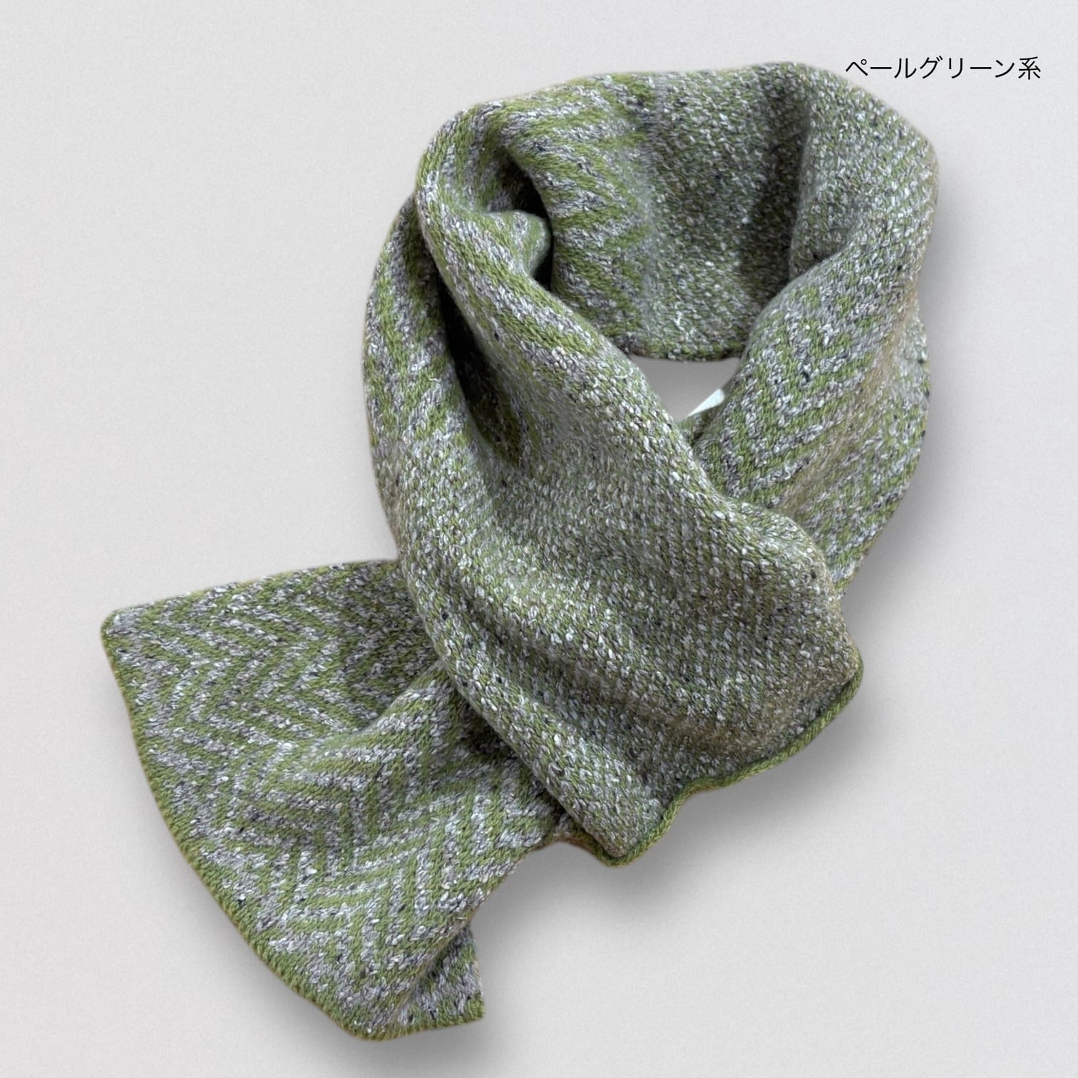 シルクネップのツイード調の素材に杢糸の要素を組み入れた素材と、メリノ産地で有名なタスマニアのファインウールを主力原料とした紡毛ウール糸を使用した、ジャガード柄マフラー。表裏どちらの面でもご使用いただけ、それぞれ違う表情がお楽しみいただけます。