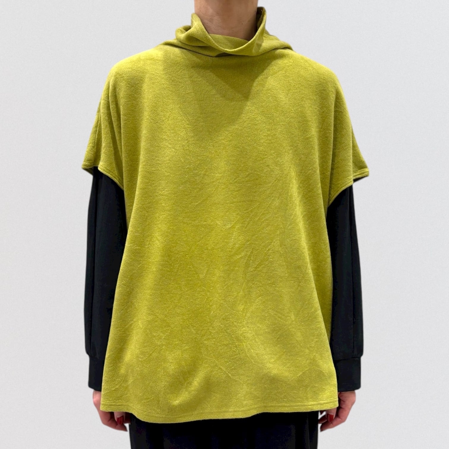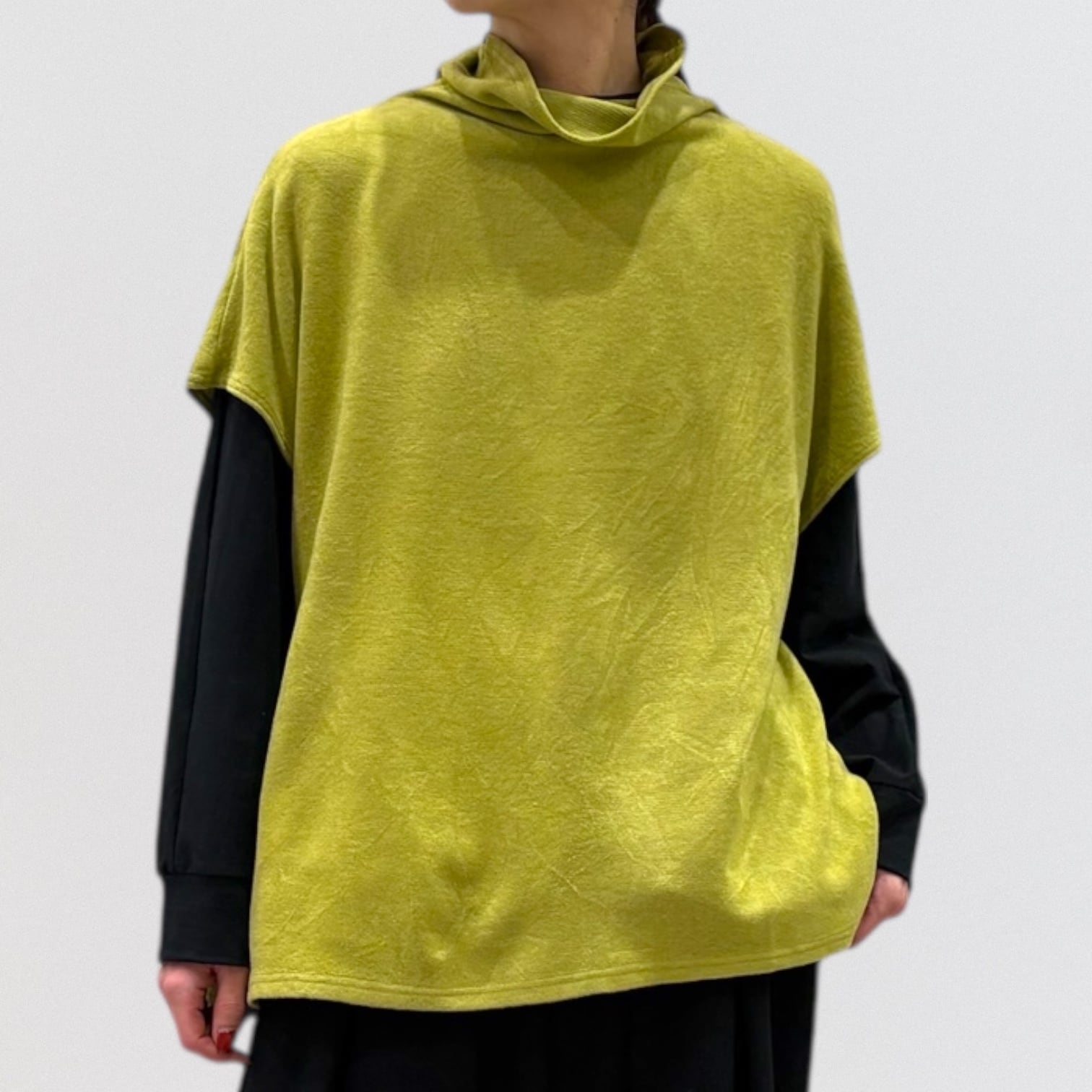 ゆったりしたシルエットのフレンチスリーブベストです。