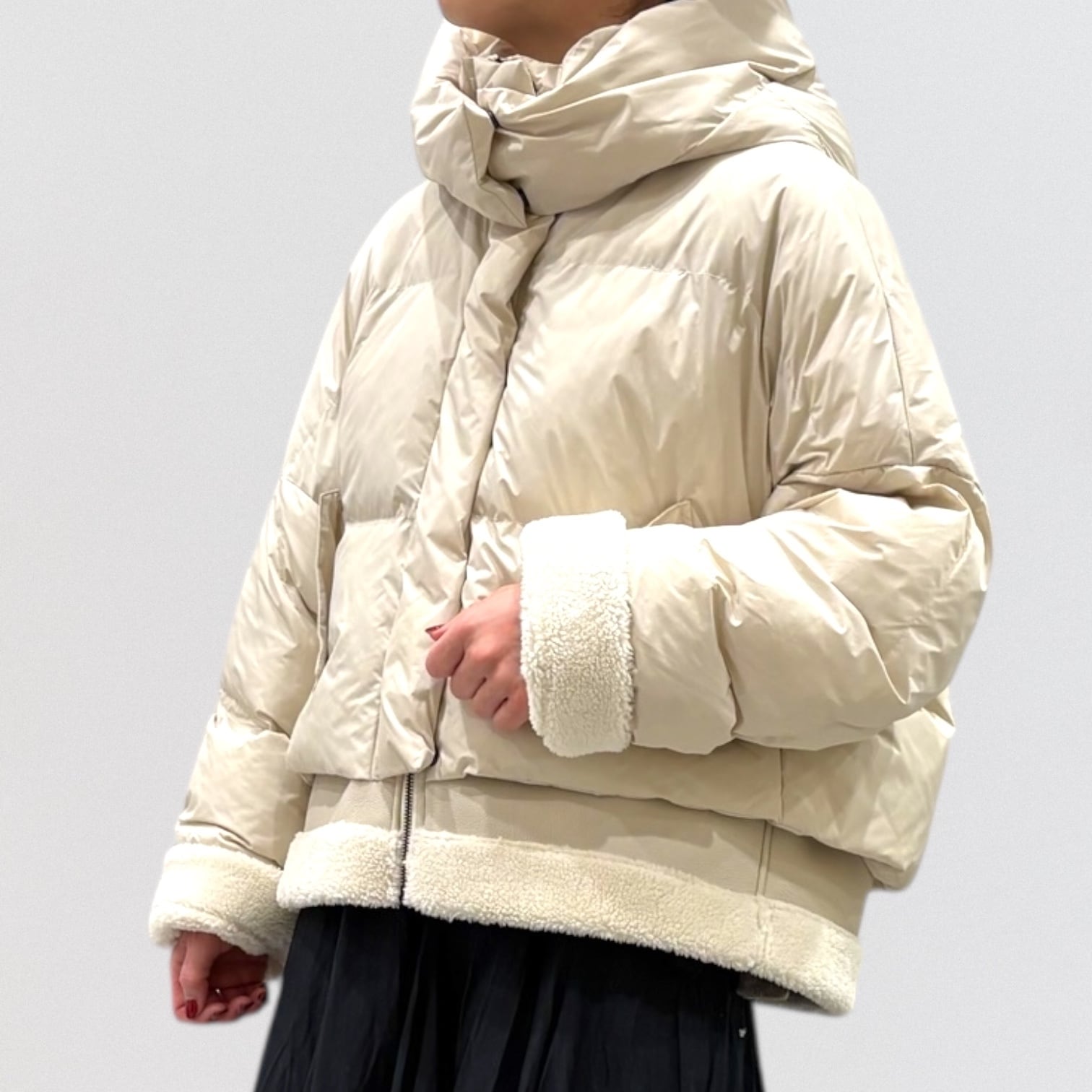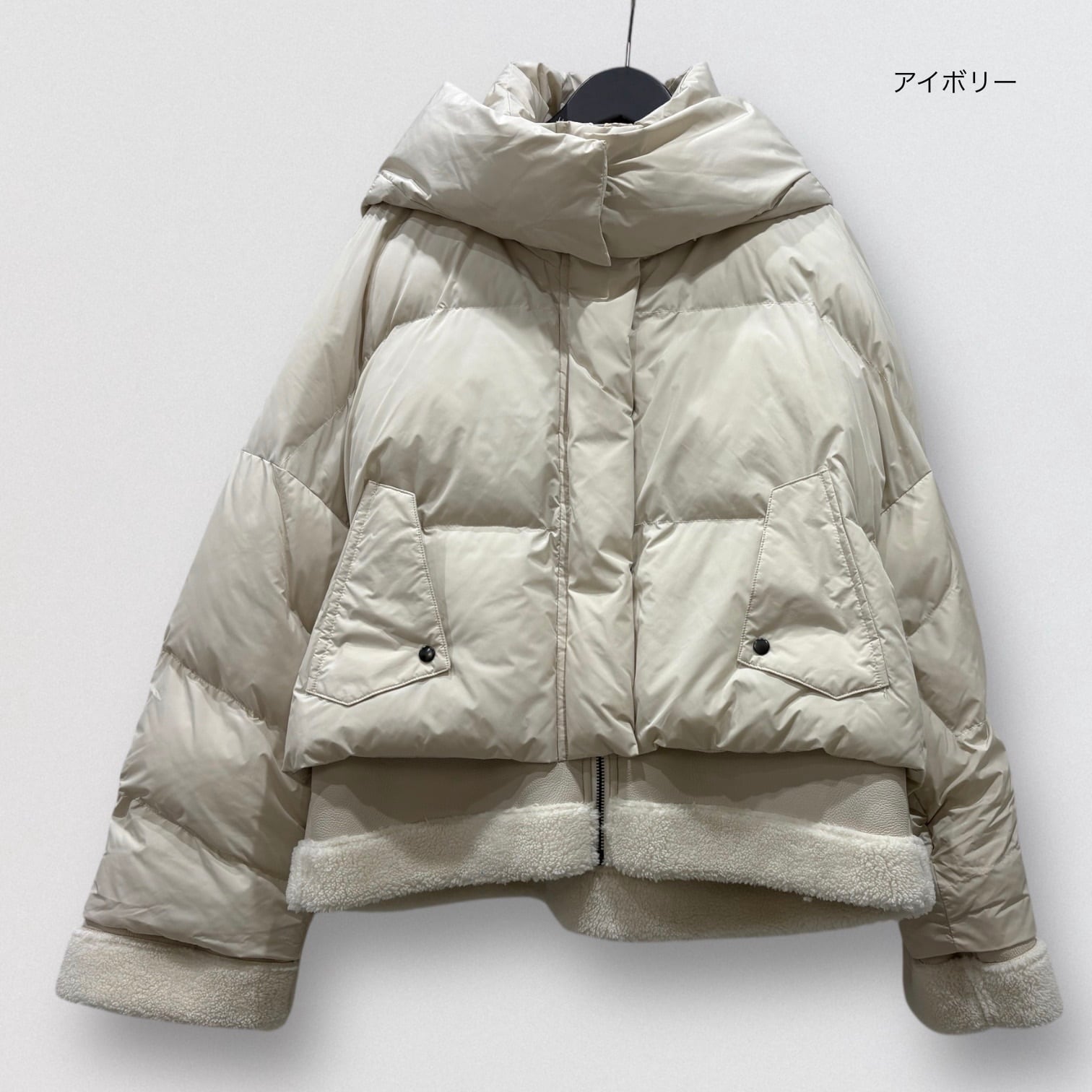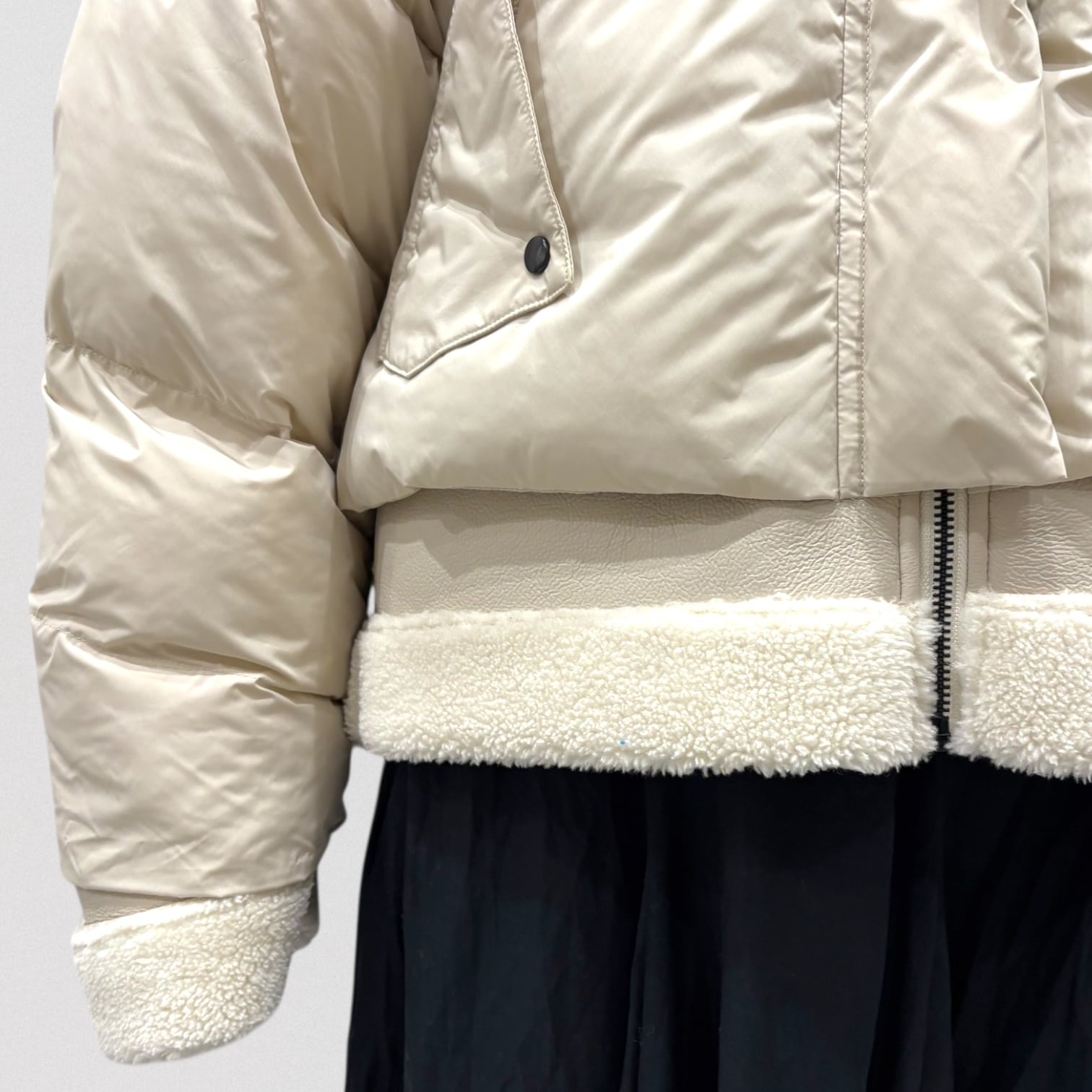 ダウンジャケットをムートンと合皮の異素材をあしらった洒落感のあるアイテム。
