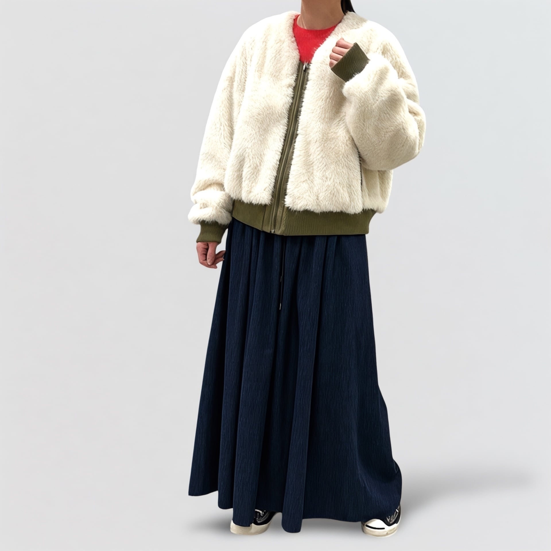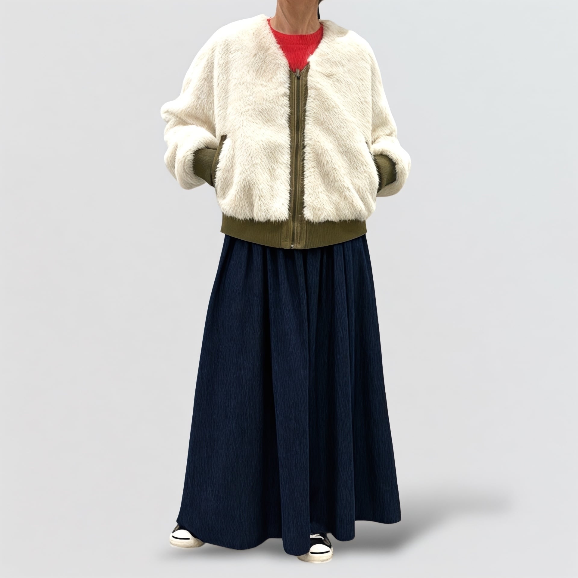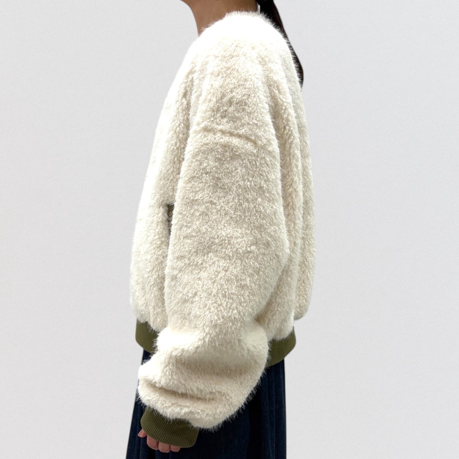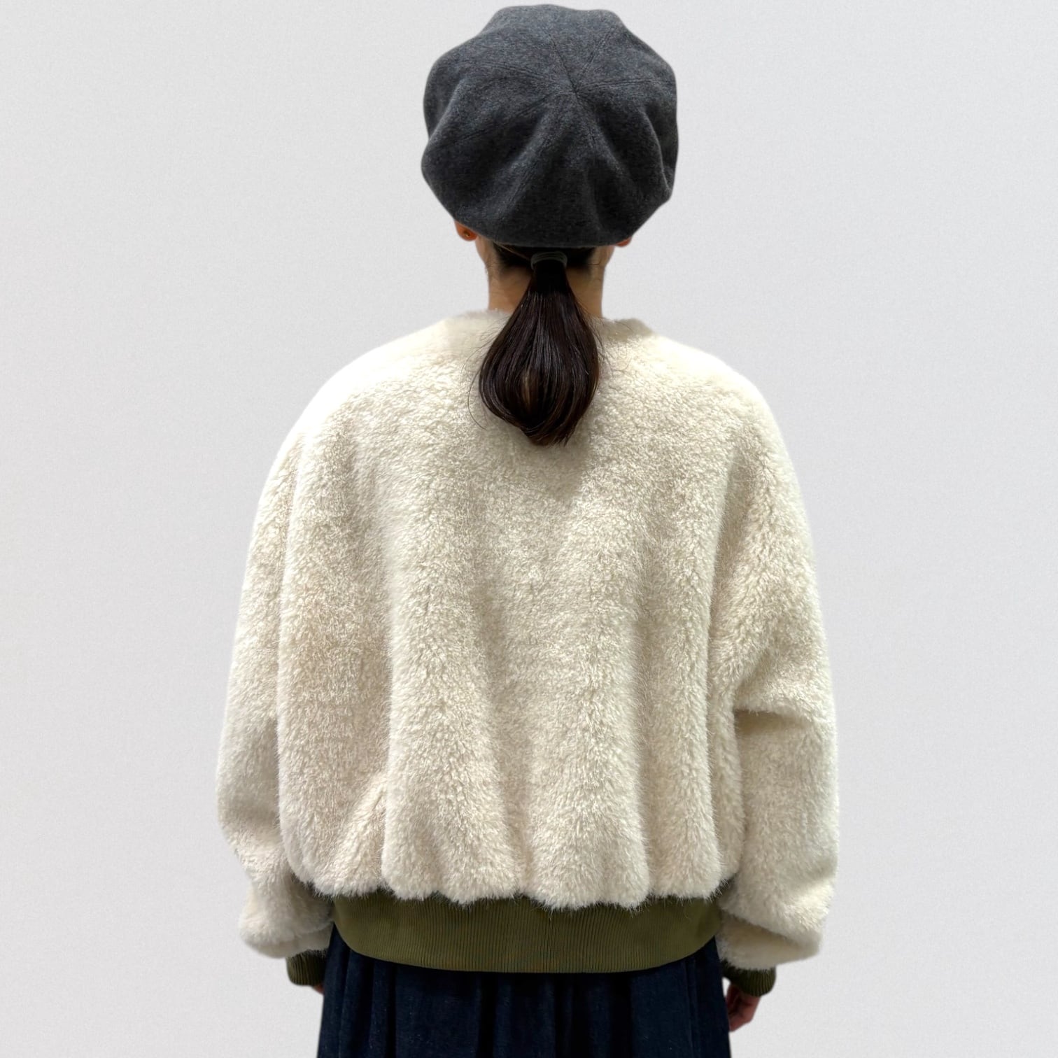 肌触りの気持ち良いシャギーボアのノーカラーブルゾンです。