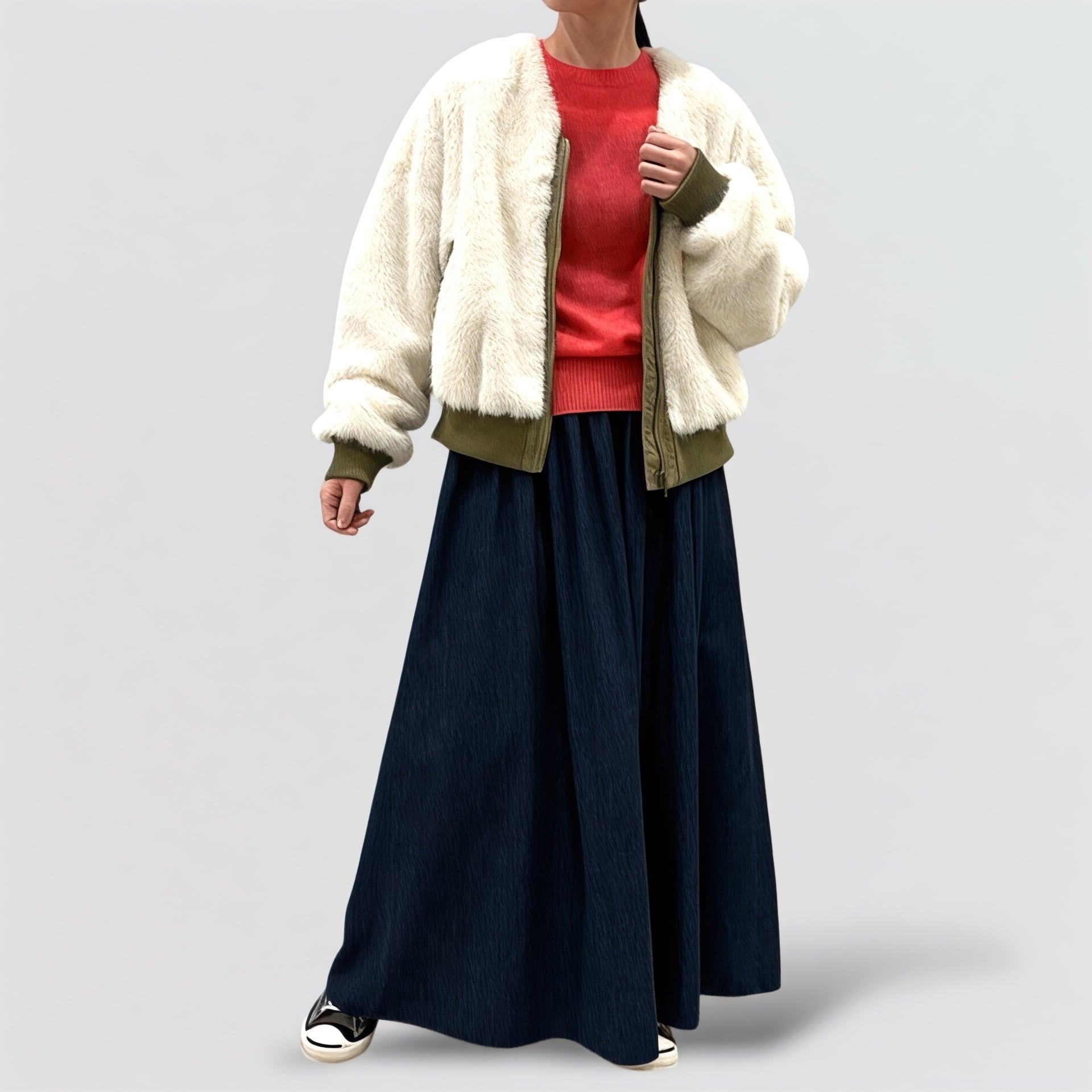 ふんわりした質感と程よいサイズ感が冬のコーディネートにぴったり。