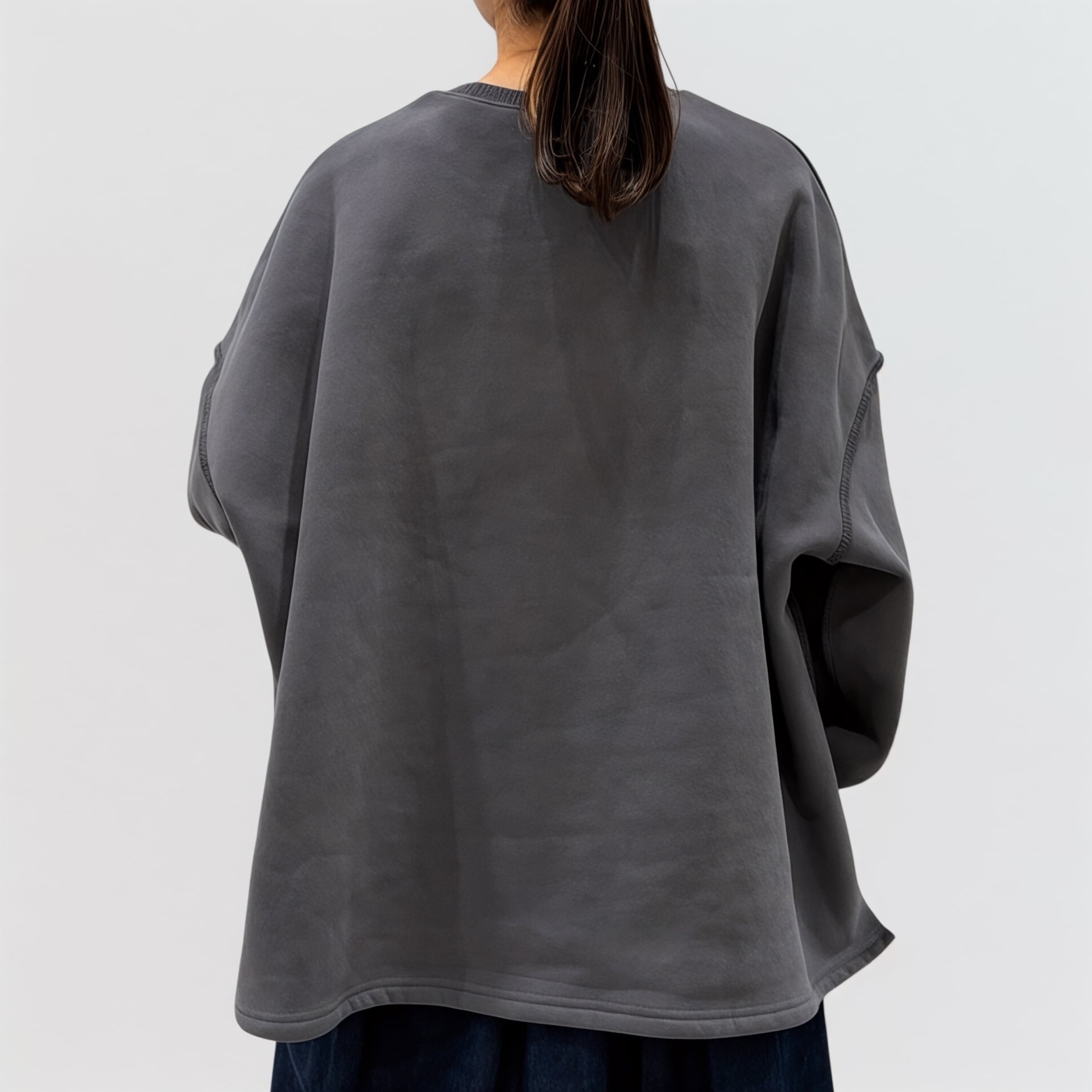ゆったりシルエットでざっくり着られる、PASSIONEの裏起毛トレーナー。
